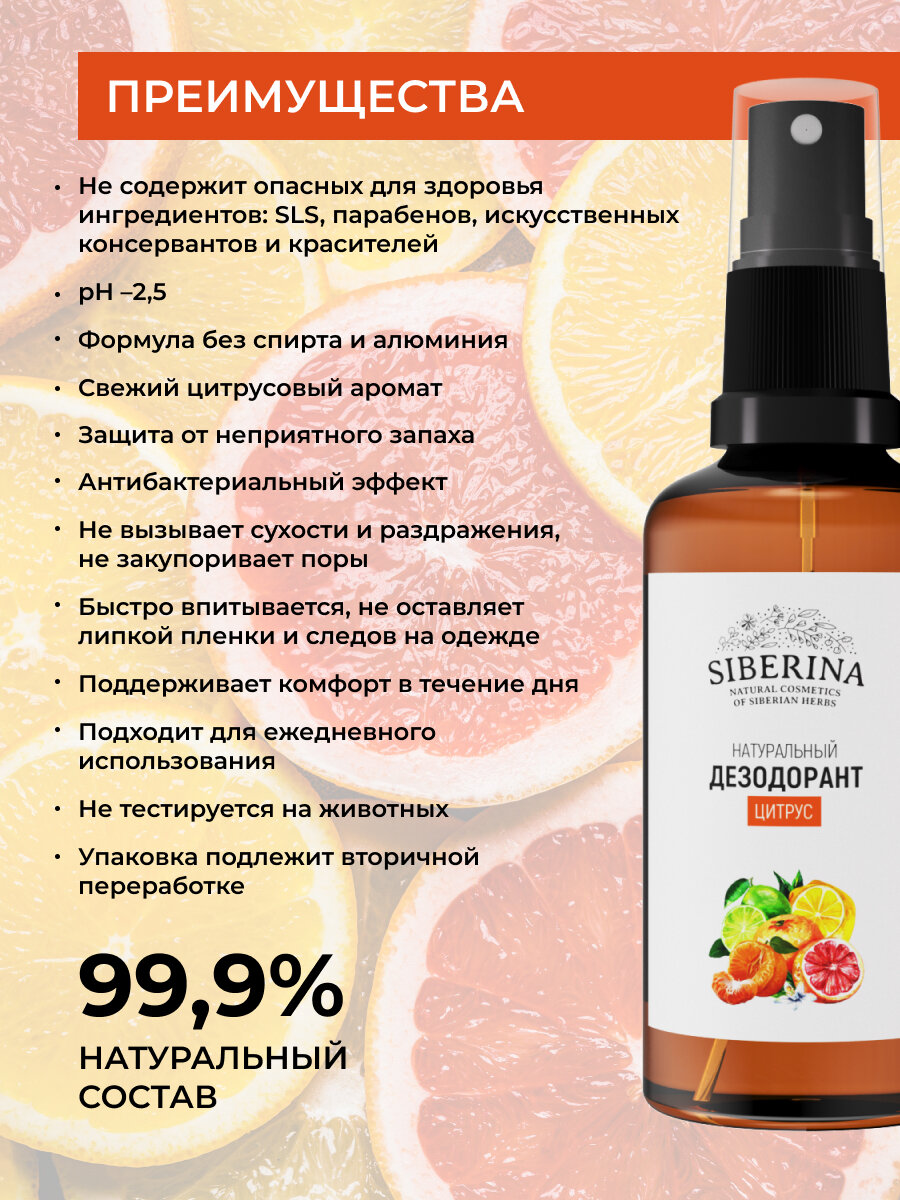На сегодняшний день товар «Siberina Дезодорант "Цитрус" 50 мл (Siberina ) (ЭХ99989430699)» можно купить с кешбеком в 2 магазинах: SIBERINA, Яндекс.Маркет