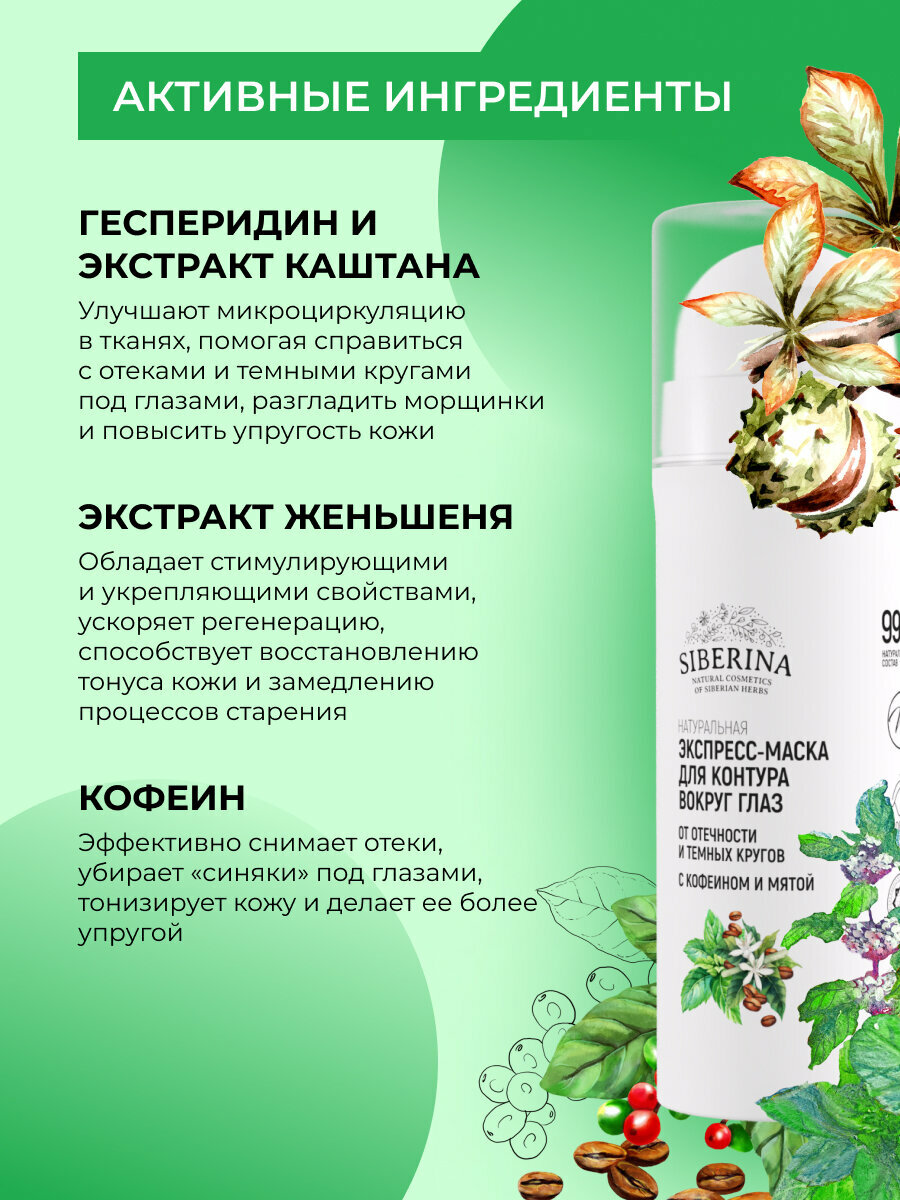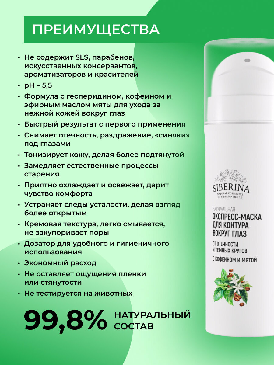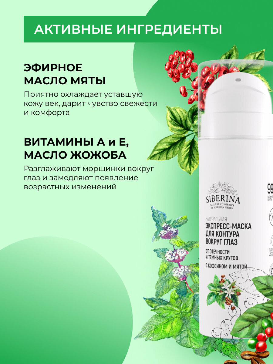 Siberina Экспресс-маска для контура вокруг глаз от отечности и темных кругов с кофеином и мятой 30 мл (Siberina ) (ЭХ99989430683)