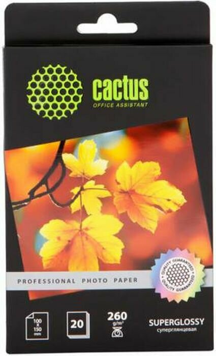 Фотобумага Cactus Prof 10x15/260г/м2/20л./белый глянцевое для струйной печати CS-HGA626020