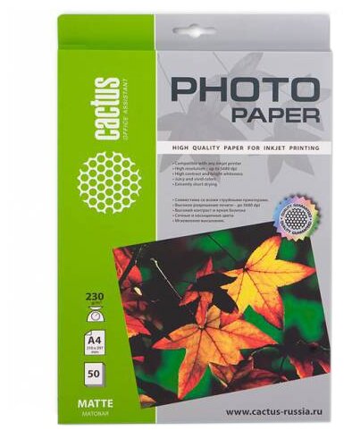 Фотобумага Cactus A4/230г/м2/50л./белый матовое для струйной печати CS-MA423050