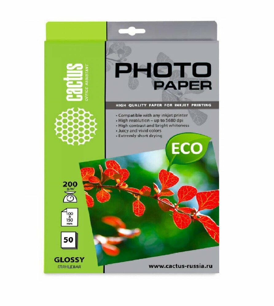 Фотобумага Cactus /200г/м2/50л./белый глянцевое для струйной печати CS-GA620050