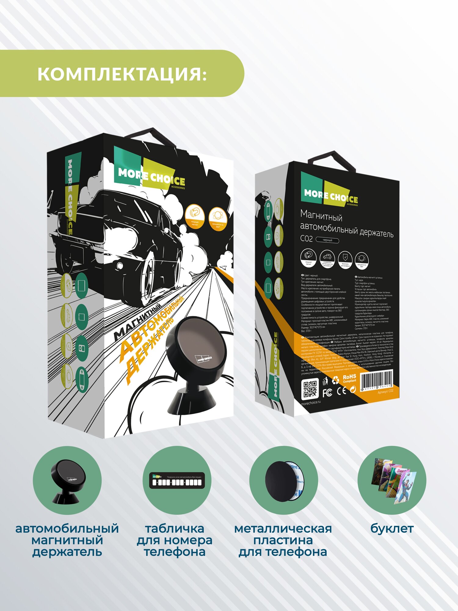 Держатель автомобильный More Choice магнитный C02 черный (C02BLACK)