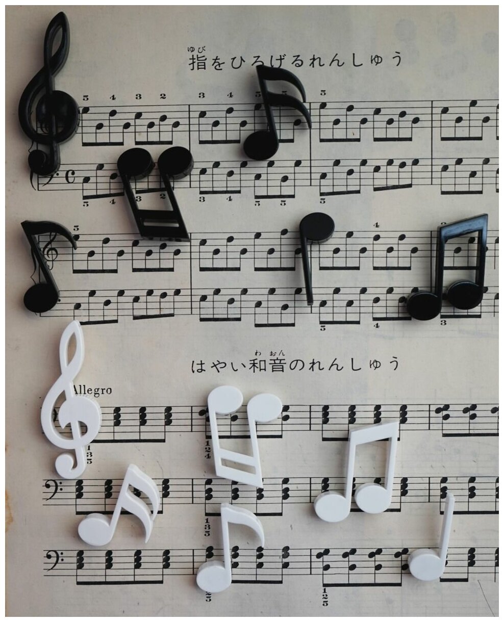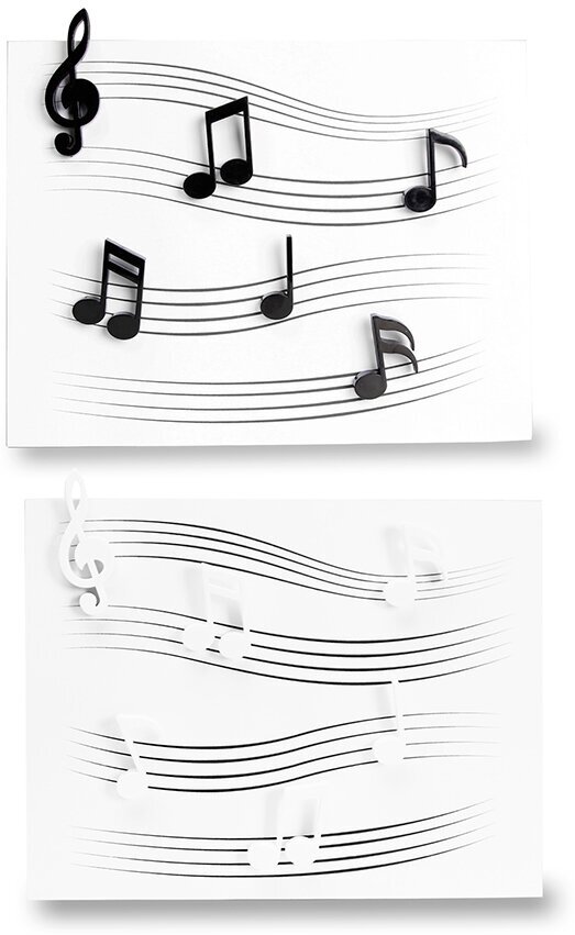 Магниты на холодильник из 6 предметов представлены в уникальном дизайнерском стиле. Каждая модель из набора – это отдельная нота или скрипичный ключ. Комплект придется по вкусу и детям, и взрослым.