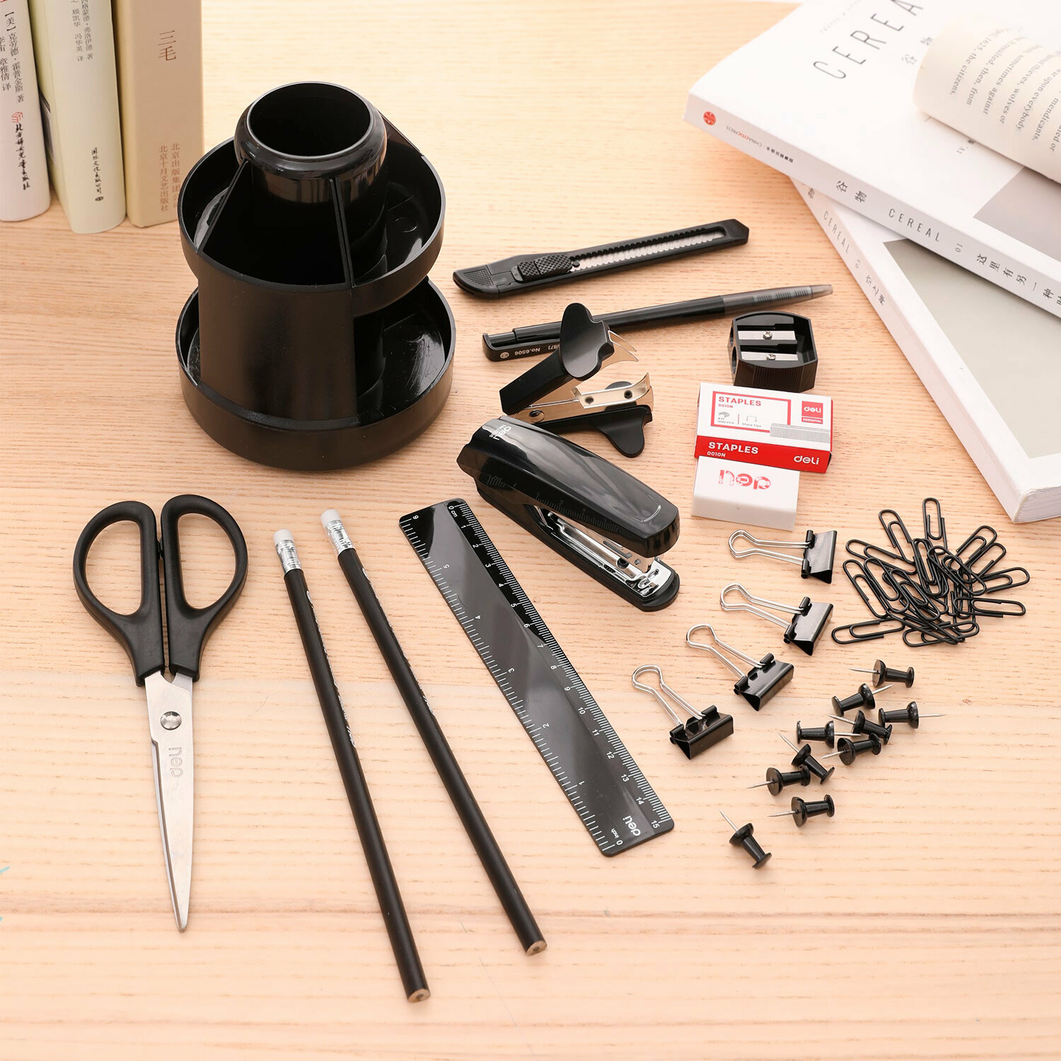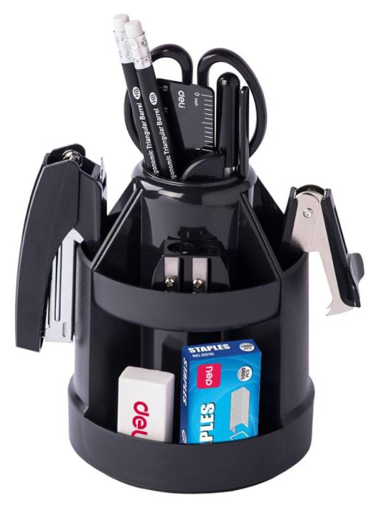 Настольный набор DELI Вращающийся настольный набор пластик 15 предметов черный E38250A