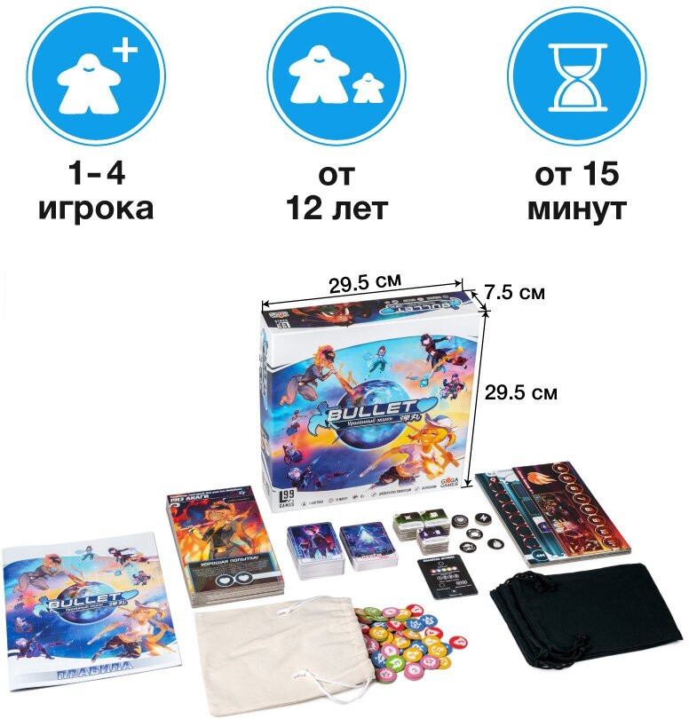 Если бы знала ты сердцем упорнымЧто еще может быть нужно, после известия об облике о главных героинях, непонятно. Ну да ладно, вот вам еще - игру создала студия, у которой такой принцип - раз видеоигры не идут к настолкам, значит настолки пойдут к видеоиграм. Ну, это в общих чертах. Эти ребята выпустили "Пиксель тактикс", абсолютный тактический восьмибитный шедевр и "Нуар" - детективную настолку с множеством вариантов игры. В бой они снова врываются со своей любимой темой - "Буллет" явно вдохновлена играми в жанрах shoot’em’up, bullet hell, пазл и тетрис. Жестко? Да, звучит многообещающе.