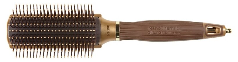 Щетка для волос керамик + ион NanoThermic 9 рядов Olivia Garden Щетка 9 рядов EXPERT STYLE CONTROL Nylon Bristles Gold&Brown