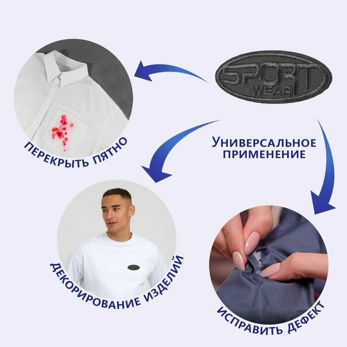 4327358 Термоаппликация овал sport 72*32см упак/10шт серый Арт Узор