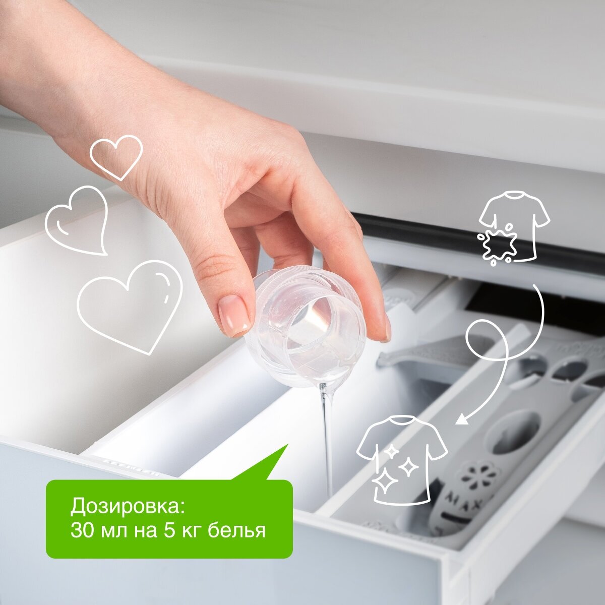 При машинной стирке: 30 мл на 5 килограммов белья.При ручной стирке: 30 мл на 5 литров воды.