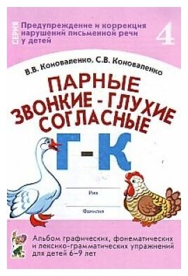 Парные звонкие - глухие согласные Г-К. Альбом упражнений для детей 6-9 лет (Коноваленко Вилена Васильевна, Коноваленко Светлана Владимировна); Гном, 2023