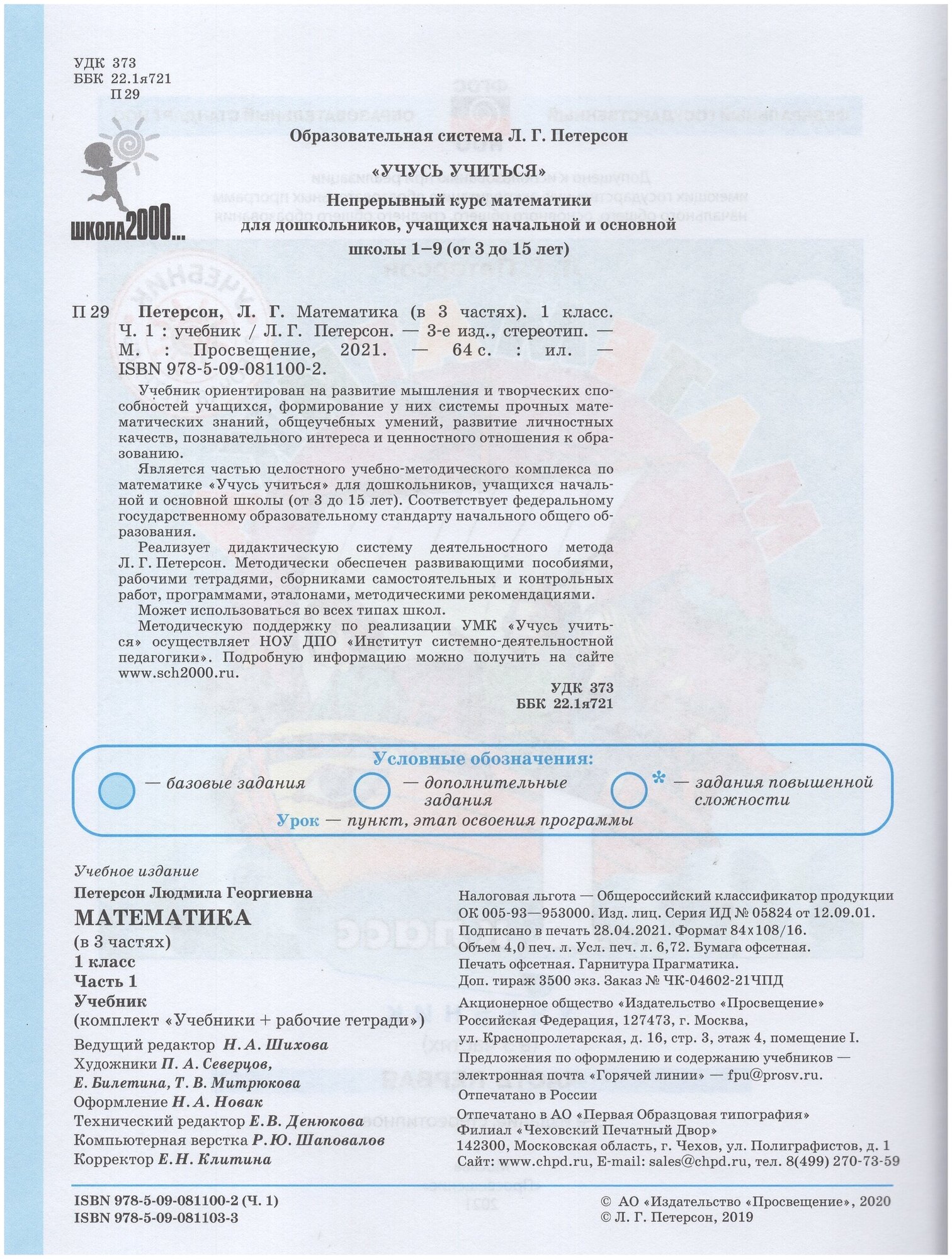 Математика. 1 класс. Учебник. Непрерывный курс математики "Учусь учиться". В трех частях (комплект из 3 книг) (Людмила Георгиевна Петерсон); БИНОМ. Лаборатория знаний, 2021