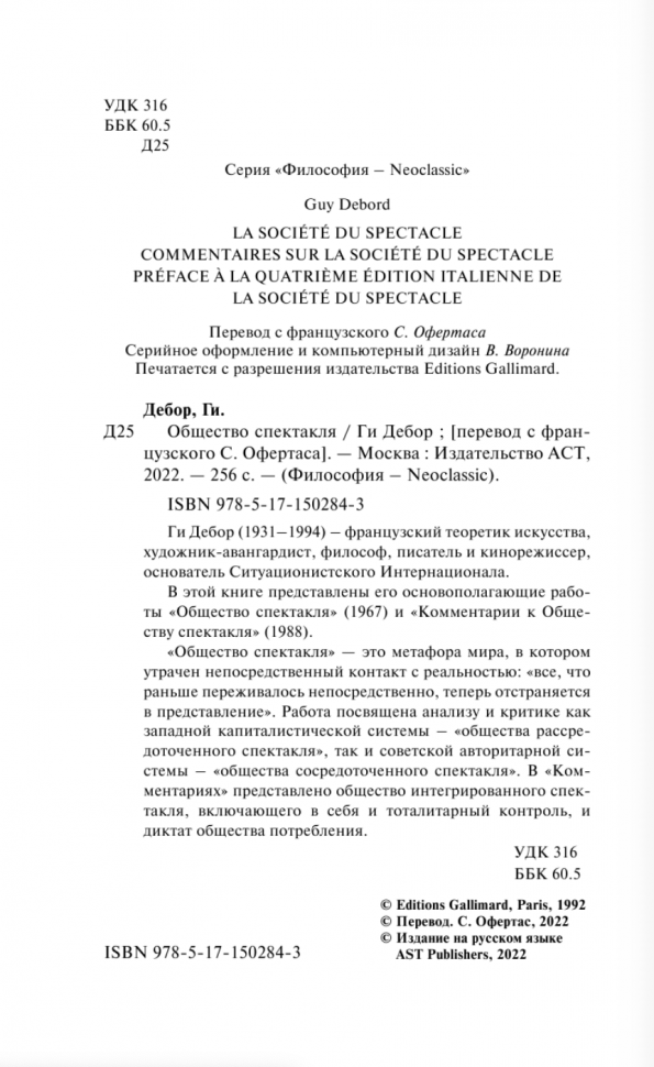 Книга: Общество спектакля (Ги Дебор); Издательство АСТ, 1992
