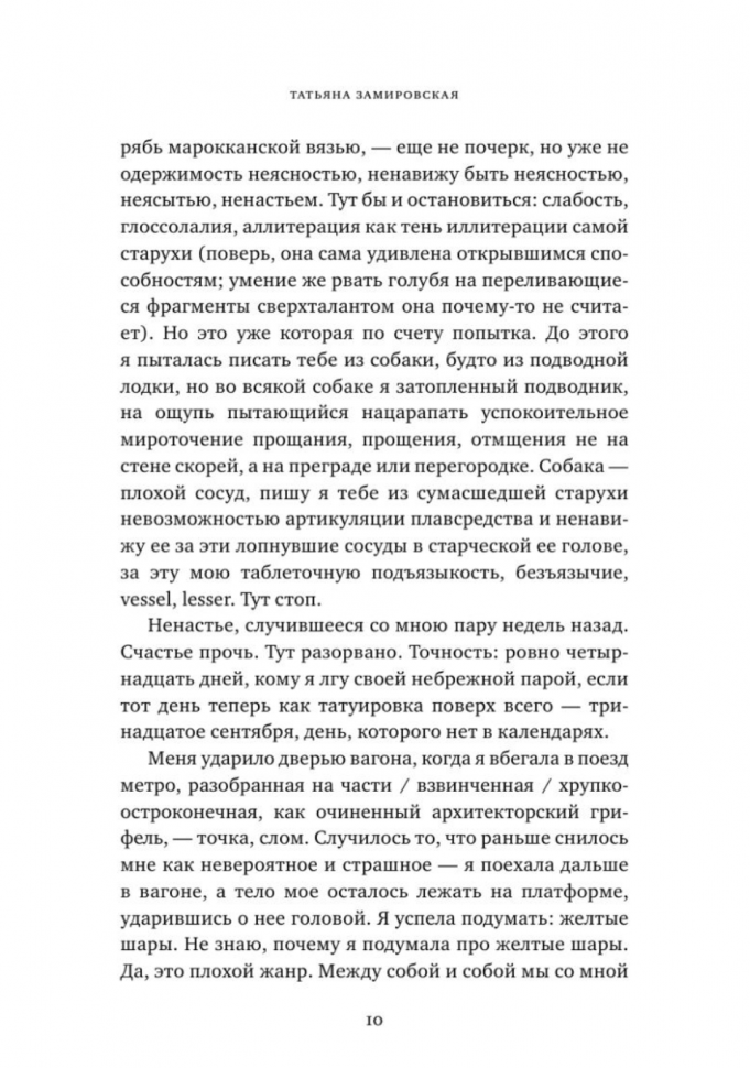 Проза Замировской перекликается и с классическими текстами Дика, Уиндема, Ле Гуин и Брэдбери, и с современными антиутопиями. Это философское размышление о невозможности речи на границе вечности, литературное исследование опыта взросления, старения и смерти. За каждой утратой теплые воспоминания, за каждым вызовом — новый виток, за каждой прежней жизнью — следующий круг. Вечное перерождение — цифровая нирвана как вечная память, закупоренная в бутылки с ликером на болотных травах, и одновременно янтарное «ничего».