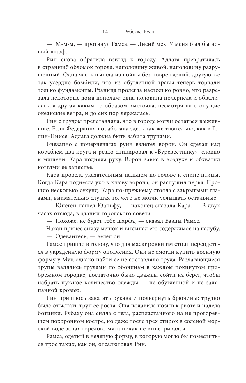 Книга оставила крайне смешанное впечатление. Первую читал с огромным удовольствием, наблюдая за формированием характера героини. Но со второй книгой что-то странное. С одной стороны, сюжет действительно увлекательный, отличные описания исторических событий, яркие второстепенные персонажи, неожиданные сюжетные повороты. Но что случилось с главной героиней? Понимаю, что она травмирована, переживает, заново ищет себя. Но почему она превратилась в нерешительную дурочку с биполяркой? Эмоции колеблются как маятник, решения она принимает после истерик. Рин - одна из лучших выпускниц лучшей военной академии страны, она несколько лет от зари до зари тренировались, училась воевать, истязала себя, чтобы достичь цели. Неужели все это испарилось, даже рефлексы?