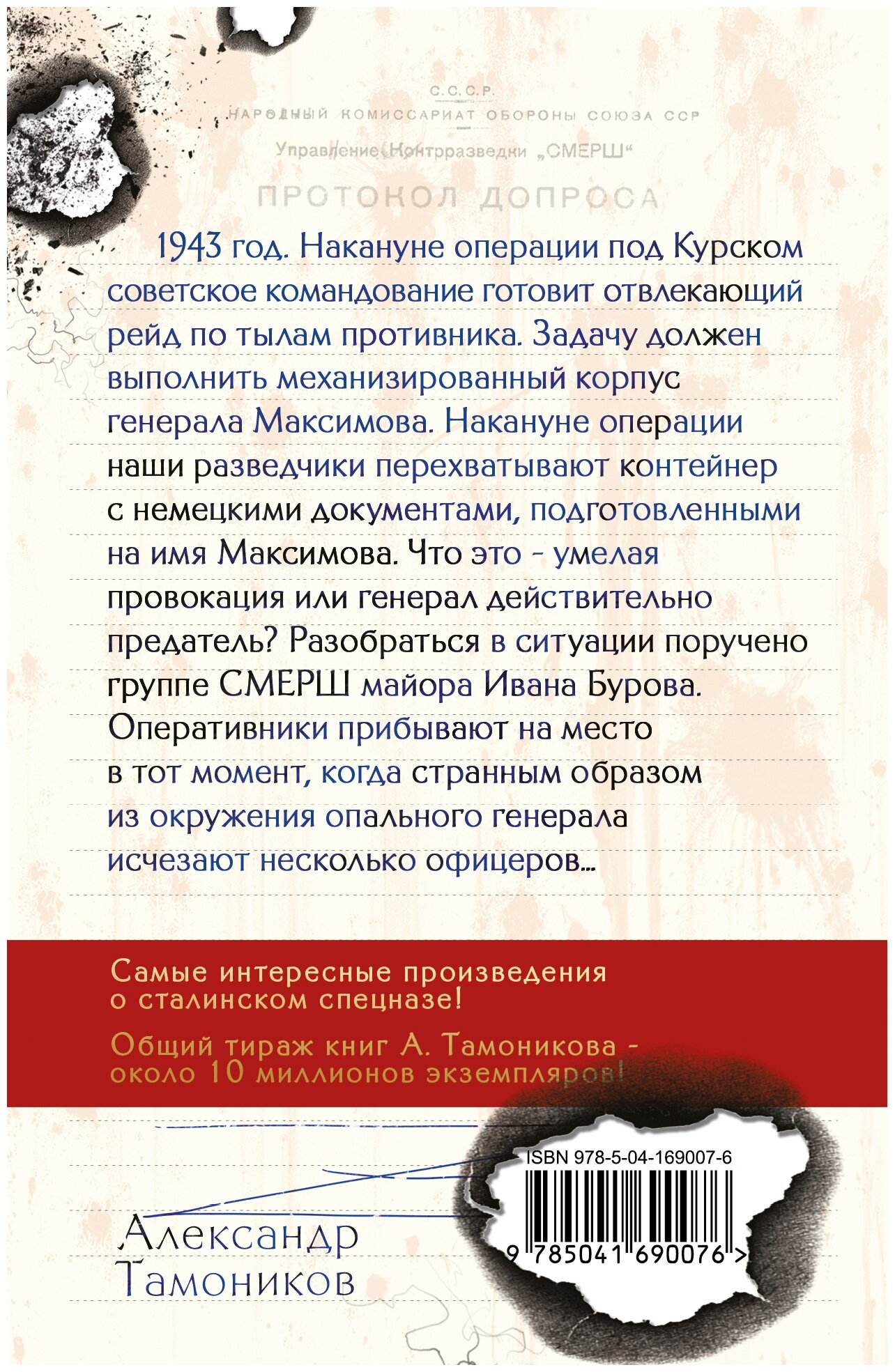 1943 год. Накануне операции под Курском советское командование готовит отвлекающий рейд по тылам противника. Задачу должен выполнить механизированный корпус генерала Максимова. Накануне операции наши разведчики перехватывают контейнер с немецкими документами, подготовленными на имя Максимова. Что это – умелая провокация, или генерал, действительно, предатель? Разобраться в ситуации поручено группе СМЕРШ майора Ивана Бурова. Оперативники прибывают на место в тот момент, когда странным образом из окружения опального генерала исчезают несколько офицеров…