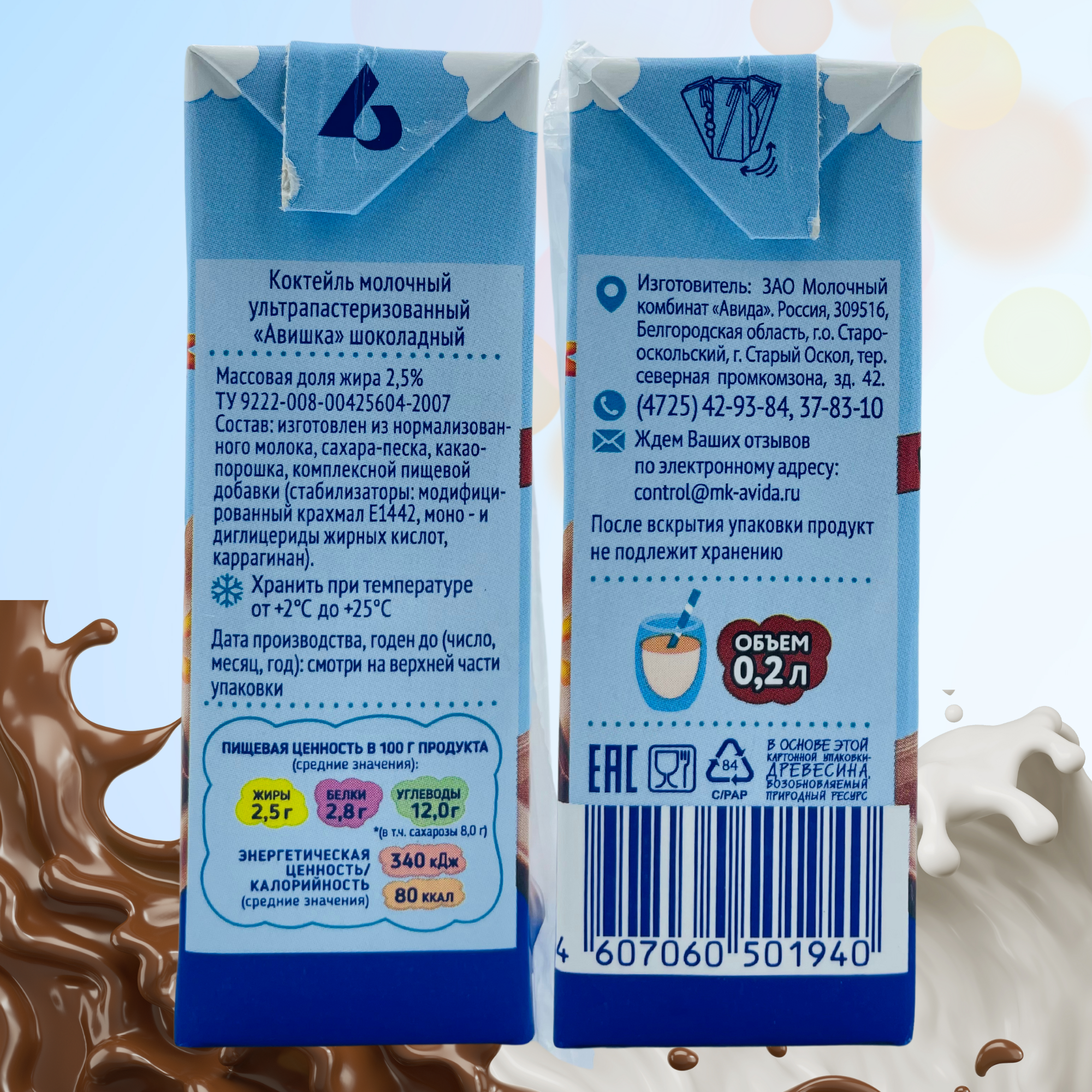 Сервис сравнения цен СкидкаГИД предлагает сравнить цены на товар «Коктейль молочный Авишка Шоколад 2.5% 200мл»