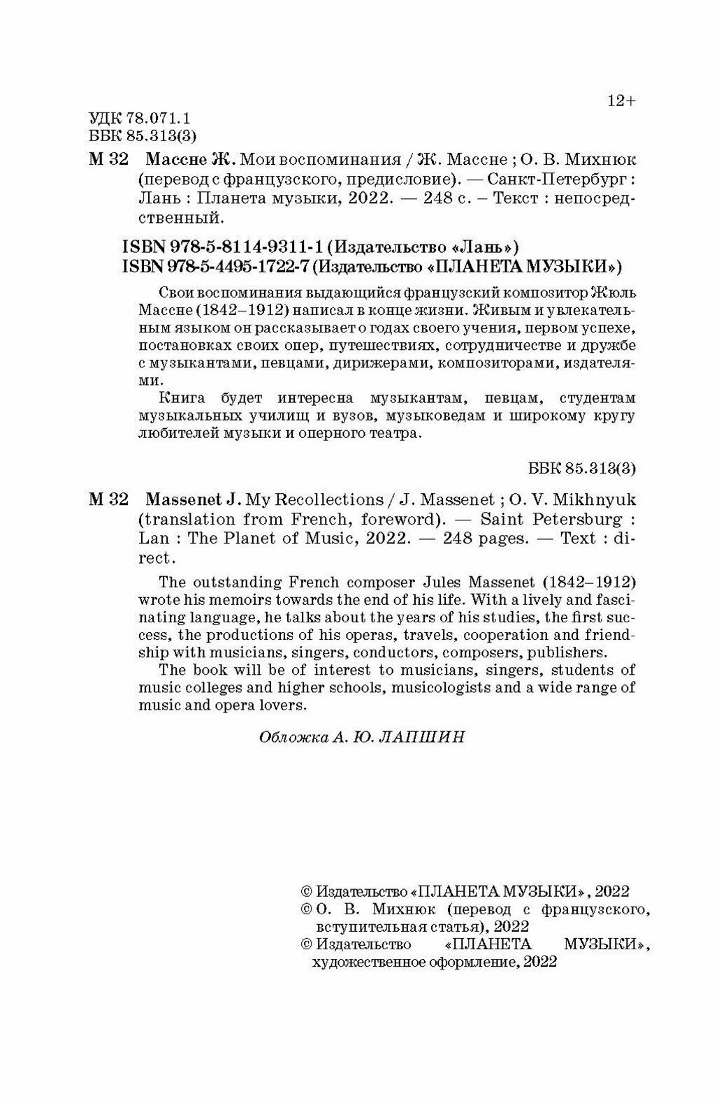 Книга: Мои воспоминания (Жюль Массне); Издательство «Планета музыки», 1911
