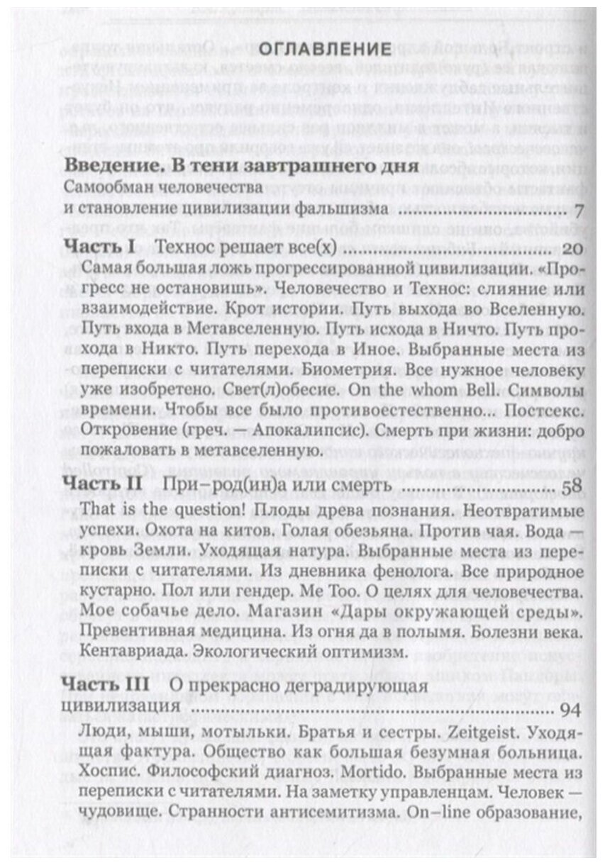 Предлагается опыт жизненно-практического философствования (field philosophy) в условиях, когда судьба человека стала определяться технологиями. Универсализацию Техноса принято рассматривать как благо, высшим состоянием которого является Сингулярность. К ее достижению стремятся, назначая даты (2045, 2099). Люди боятся знать правду, что это научное название Апокалипсиса, который в вялотекущей форме мир уже переживает. Трагедия жизни в Техносе в том, что мы становимся ненужными даже в мышлении и творчестве. Паразиты не имеют драйверов существования. Объявляя человека выходящей за пределы вида "открытой целостностью", теоретики устремились к миру без самих себя. Культивируется "потребность в непонимании" как смысловой центр идеологии фальшизма современной цивилизации. Через призму практико-прикладной философии (а в Приложении - и теоретической) предлагается Откровение для ХХI века о конкретных явлениях и фактах цивилизации фальшизма. Цель консервативного сопротивления самоапокалипсису - удерживать науку и технологии под контролем общества. Книга может служить укреплению духа всех, кто не утратил здравый смысл и хочет "изменяясь, оставаться собой". Тех, кто находится в начальной стадии трансгуманной деградации, заставит задуматься — кем они будут дальше.