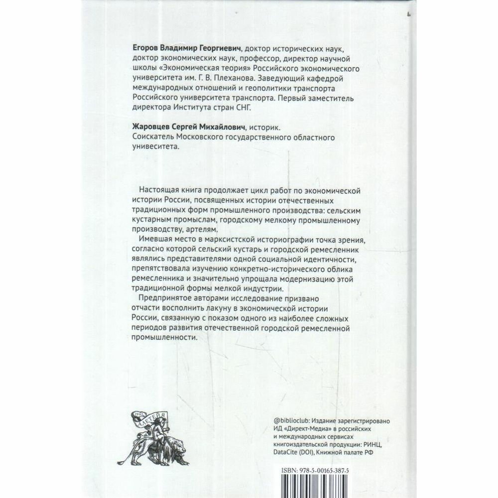 Предпринятое авторами исследование призвано отчасти восполнить лакуну в экономической истории России, связанную с показом одного из наиболее сложных периодов развития отечественной городской ремесленной промышленности.