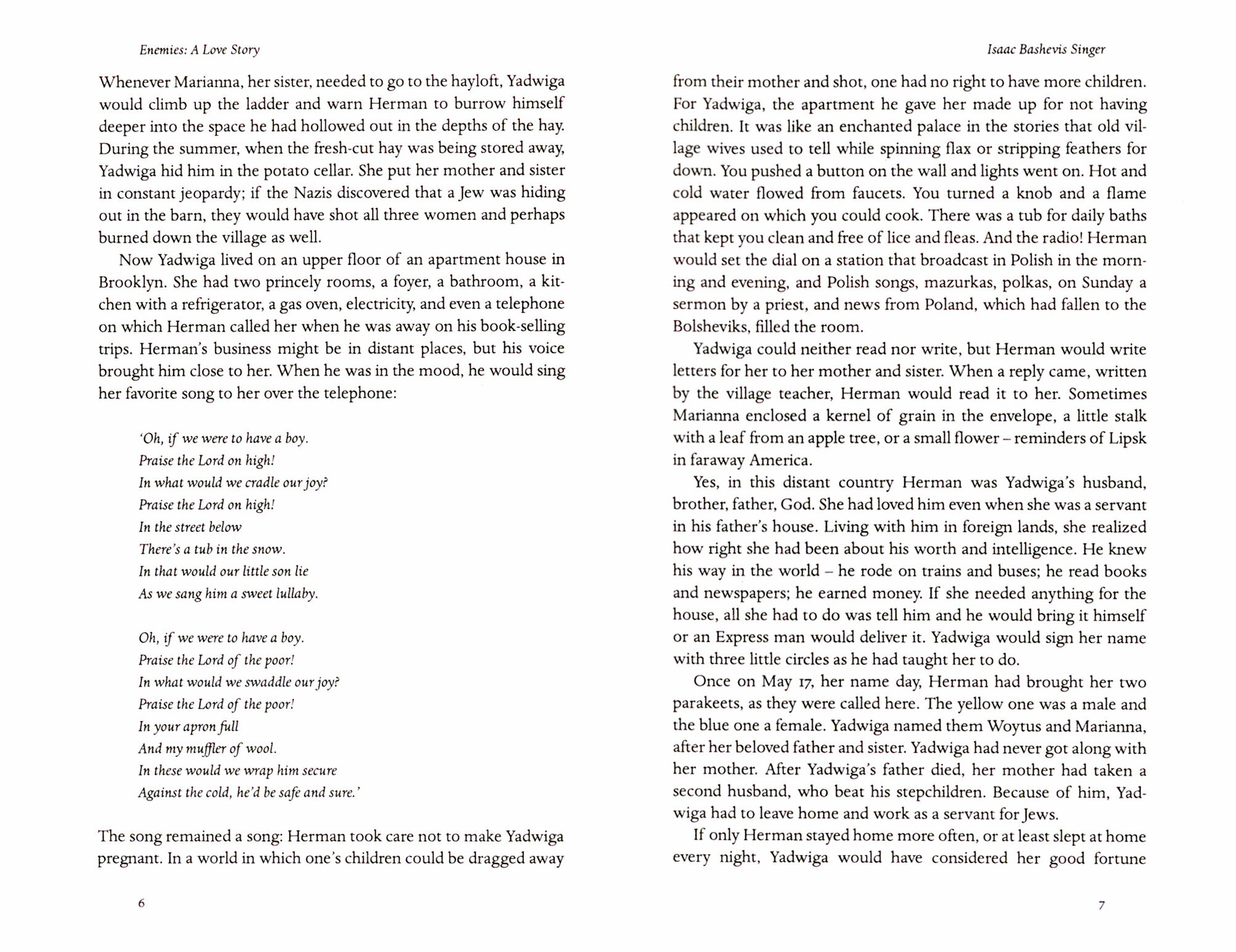 and Tamara, his first wife. Unsure of who he really is, what he wants and whether he can ever find peace, Herman navigates a crowded, Yiddish New York with a sense of paranoia and impending doom. Published in 1972, Enemies, A Love Story is an astonishing novel that blends humour and pathos to create a rich, humane portrayal of a man who cannot escape his past.