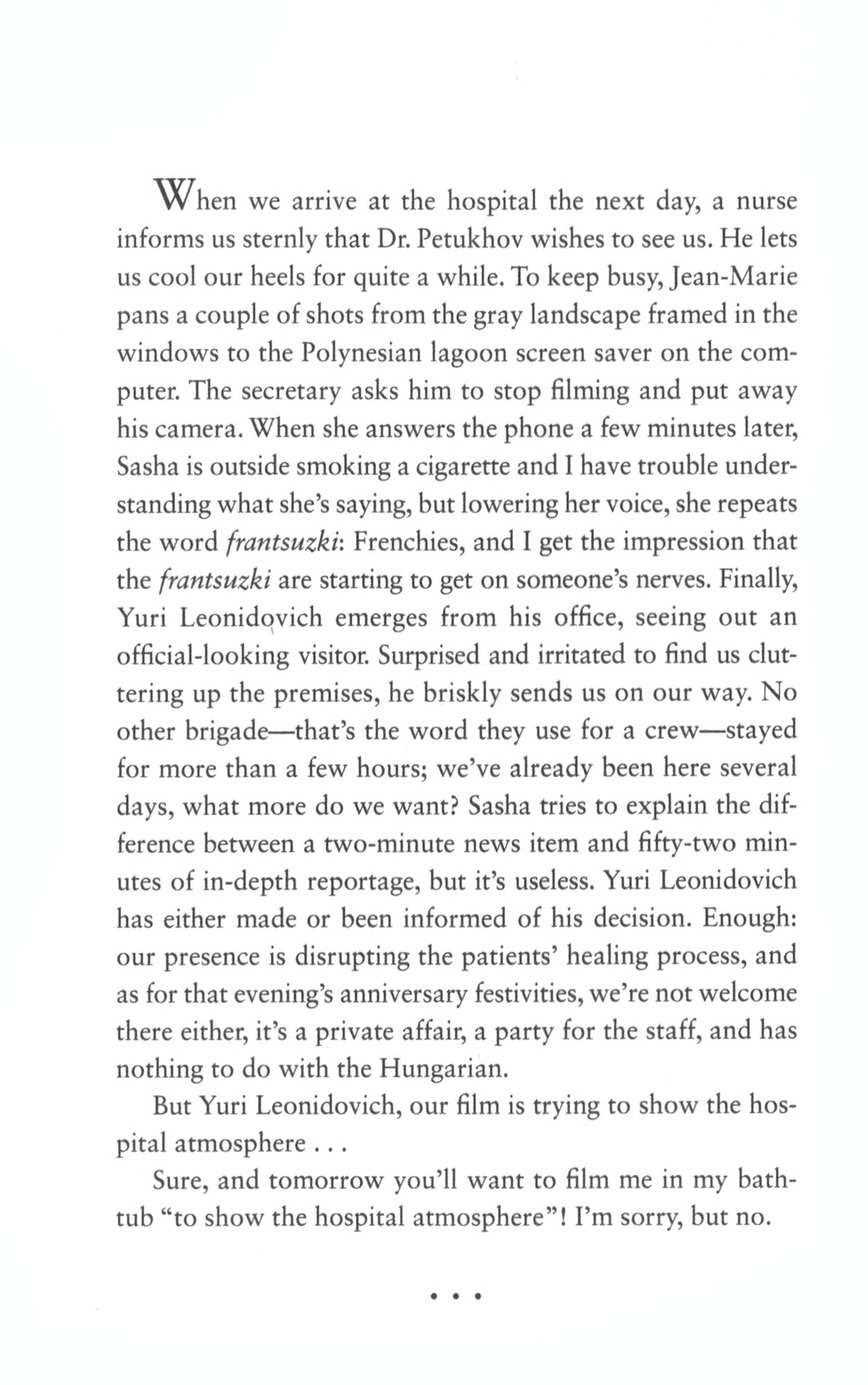 and a violently passionate affair with a woman that he loves but which ends in destruction. Moving between Paris and Kotelnich, a grisly post-Soviet town, Carrere weaves his story into a travelogue of a journey inward, travelling fearlessly into the depths of his tortured psyche.