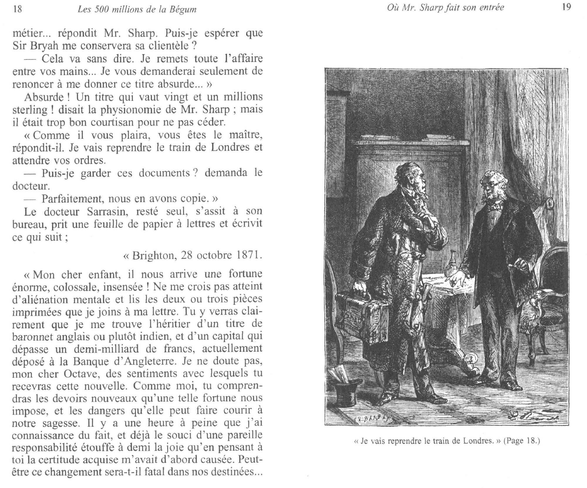 Le Dr Sarrasin, paisible savant francais, se trouve soudain a la tete d'un fabuleux heritage : les cinq cents millions de la Begum Gokool. Mais le Pr Schultze revendique vigoureusement sa part. Les deux hommes finissent par s'entendre et partagent cette mirifique fortune. Tandis que le Francais emploie son argent a l'edification d'une cite modele, France-Ville, l'Allemand, lui, eleve la Cite de l'Acier. Herr Schultze a tenu des propos alarmants sur France-Ville : « J'espere, a-t-il dit, que l'experience que nous ferons sur elle servira d'exemple au monde. » Un jeune ami alsacien du Dr Sarrasin decide alors d'espionner les oeuvres de Schultze et, se faisant passer pour un citoyen suisse, penetre dans la Cite de l'Acier, forteresse jalousement gardee... Les Cinq Cents Millions de la Begum : un des romans de Jules Verne ou le poids de l'histoire recente se fait sentir. Illustrations de l'edition originale Hetzel.
