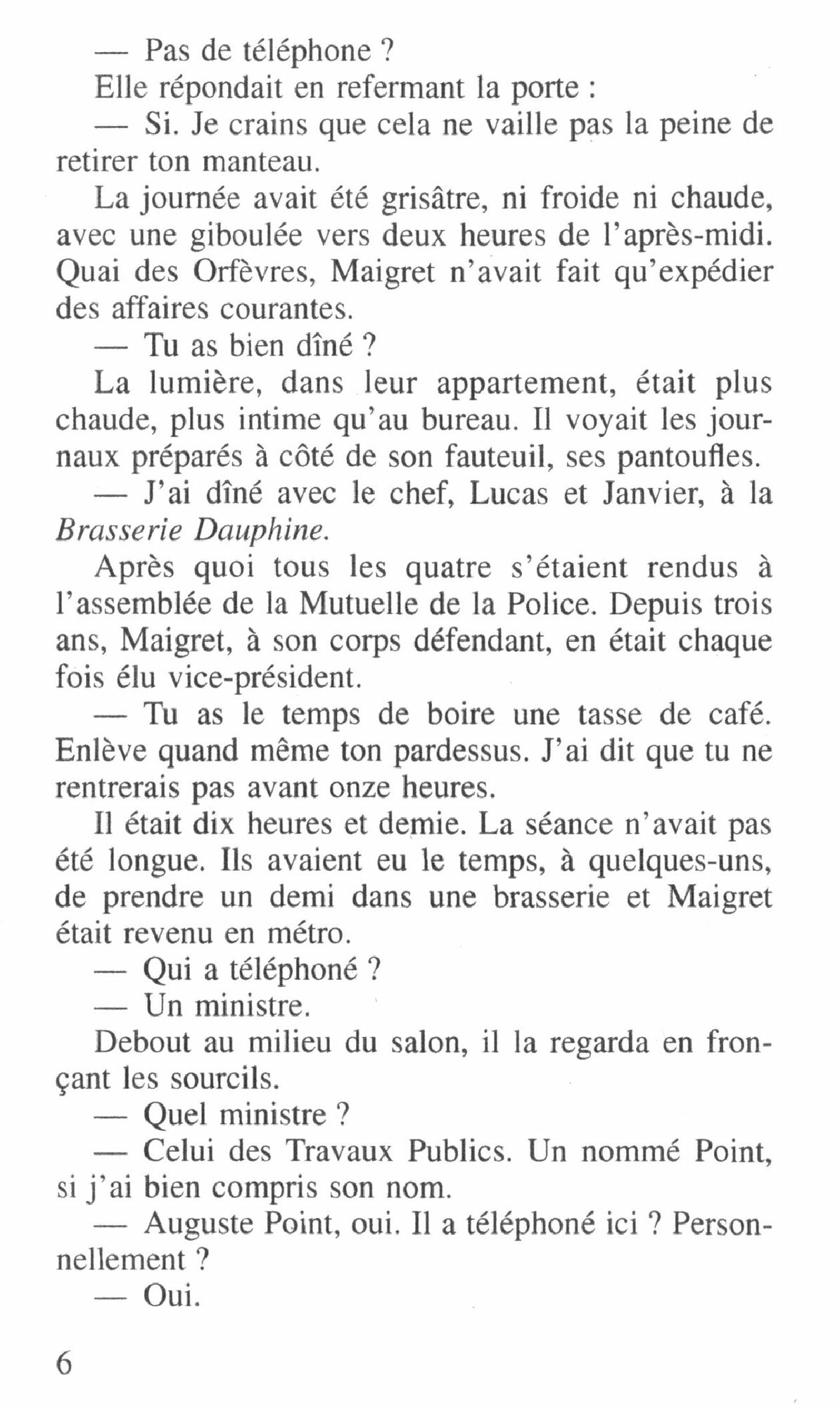 Le commissaire Maigret est ici confronte a une sombre affaire politique – un monde qu'il n'a jamais aime. Un sanatorium pour enfants s'est ecroule par suite d'un glissement de terrain, causant des dizaines de morts. Peu de temps apres le drame, la rumeur court qu'un rapport technique avait nettement mis en garde les pouvoirs publics contre le danger. Ce rapport a ete remis a Auguste Point, nouveau ministre des Travaux publics, mais le document lui a ete vole la nuit suivante. Ses adversaires politiques l'accusent deja de l'avoir fait disparaitre afin de proteger les responsables du desastre. Il fait officieusement appel a Maigret pour retrouver le rapport. Parlementaires corrompus, presse de chantage, cynisme des puissants... Le commissaire explore de sinistres coulisses.