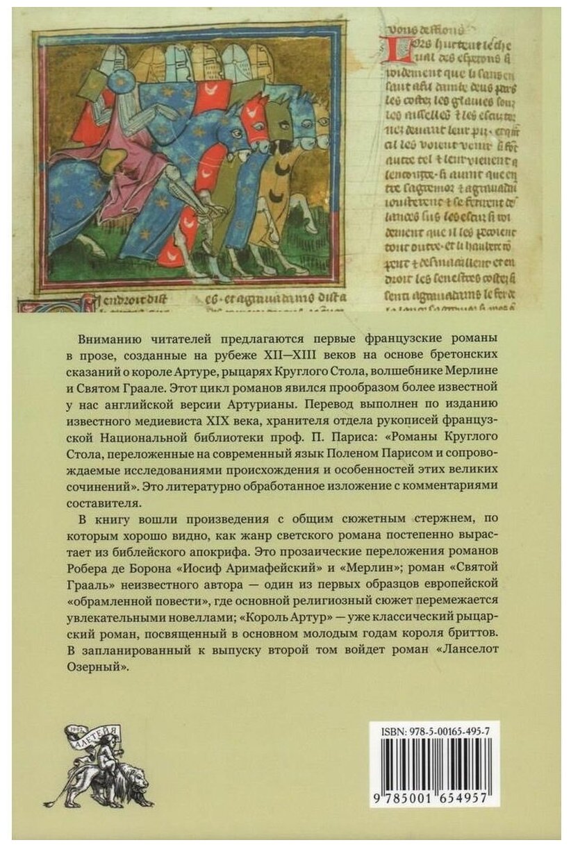 Бретонские сказания о короле Артуре, рыцарях Круглого Стола и поисках священного Грааля и созданные на их основе французские рыцарские романы почти не знакомы российскому читателю, хотя они гораздо старше, полнее и многообразнее известной у нас английской версии Артурианы. Перевод выполнен по изданию известного медиевиста XIX века, хранителя отдела рукописей французской Национальной библиотеки проф. П. Париса: «Романы Круглого Стола, переложенные на современный язык Поленом Парисом и сопровождаемые исследованиями происхождения и особенностей этих великих сочинений».