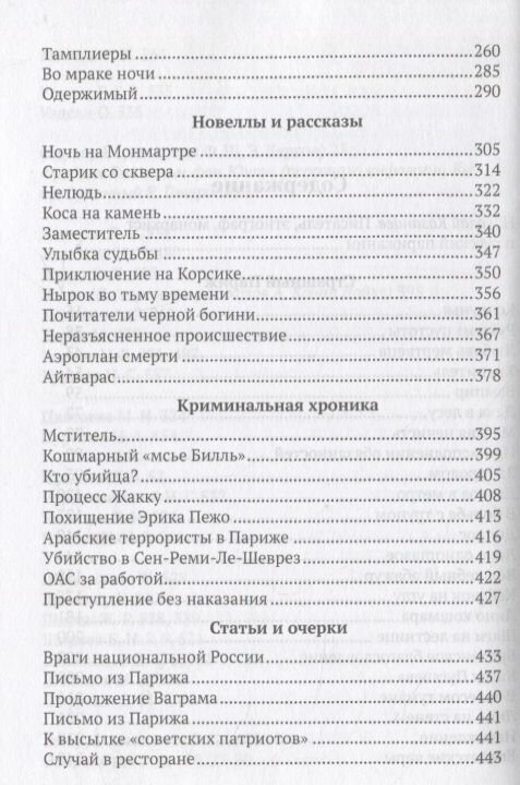 Царское Село, 1918 - Париж, 2011), видного представителя "второй волны" русской эмиграции, составляет цикл новелл "Страшный Париж" — уникальное сочетание детектива, триллера, эзотерики и нравственно-философских размышлений, где в центре событий оказываются представители русской диаспоры во Франции. В книгу также вошли впервые публикуемые в России более поздние новеллы из того же цикла, криминальная хроника и очерки, ранее печатавшиеся в эмигрантской периодике.
