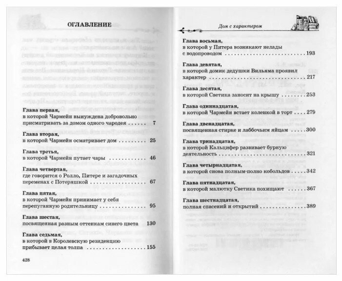 В доме придворного чародея Вильяма Норланда пространство и время ведут себя по своим, чародейским законам. Единственная дверь ведет куда угодно — и в спальни, и в кухню, и в горные пещеры, и в прошлое, и в королевскую библиотеку. Родственница чародея, юная Чармейн, волей-неволей вынуждена разбираться, как устроен дом с характером, — и в результате оказывается в гуще придворных интриг. Добрый король и его дочь пытаются выяснить, отчего королевство пришло в упадок, и найти утраченный Эльфийский Дар, а для этого зовут на помощь могущественную колдунью Софи — да-да, ту самую, уже знакомую читателям по «Ходячему» и «Воздушному замку», — и она прибывает ко двору в сопровождении огненного демона Кальцифера и двух очаровательных маленьких мальчиков, один из которых — ее сынишка Морган, а вот второй приготовил всем сюрприз…