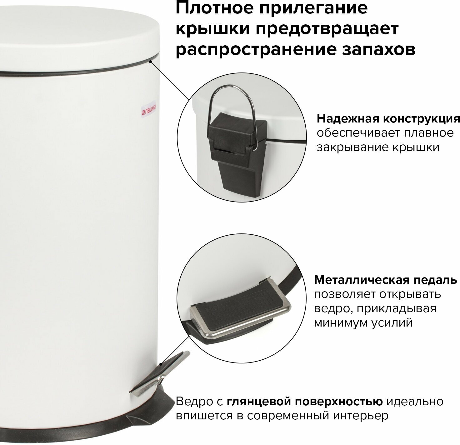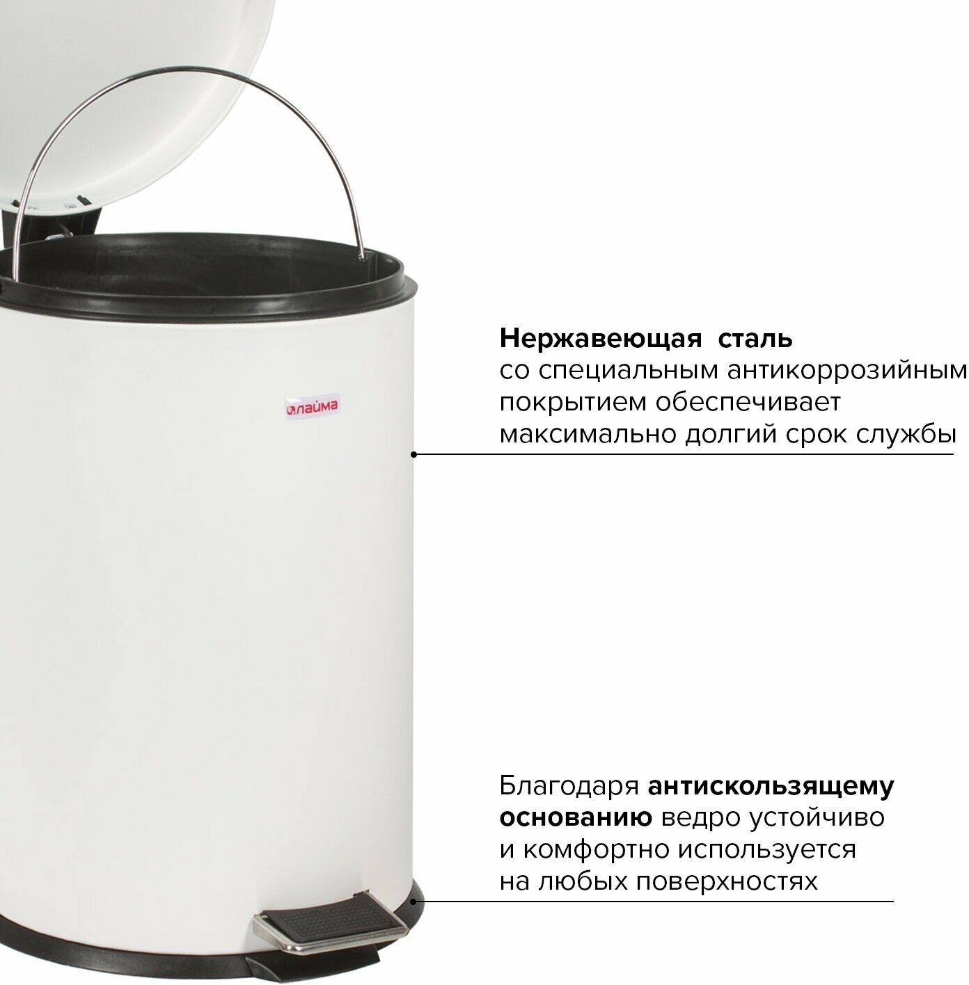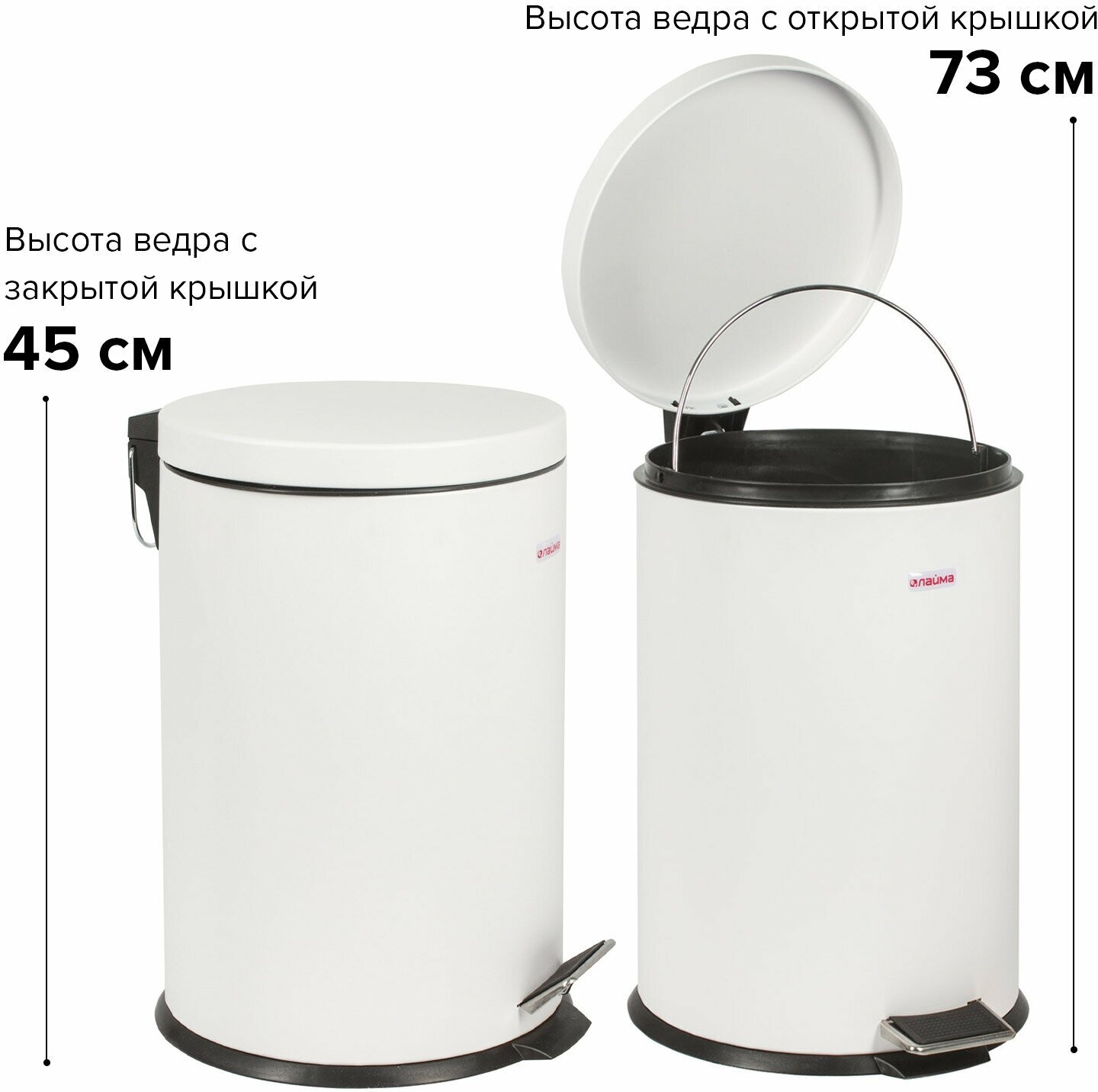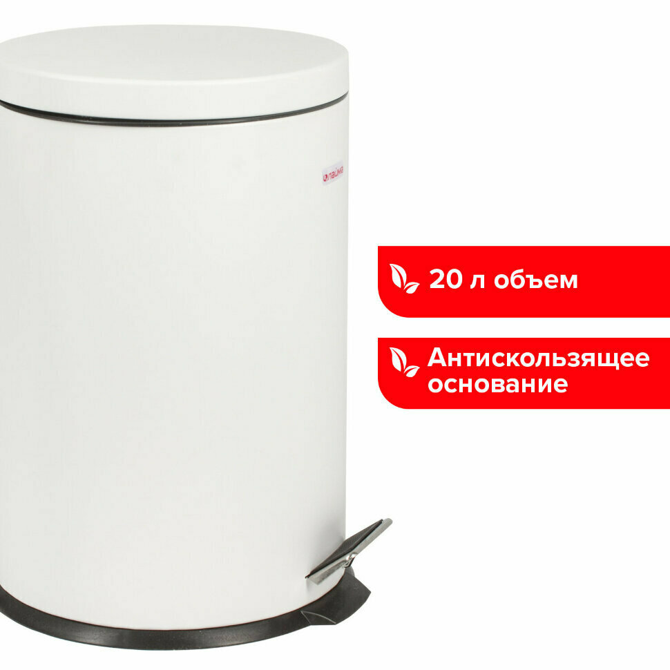 Ведро-контейнер для мусора (урна) с педалью ЛАЙМА "Classic" 20 л белое глянцевое металл 604949