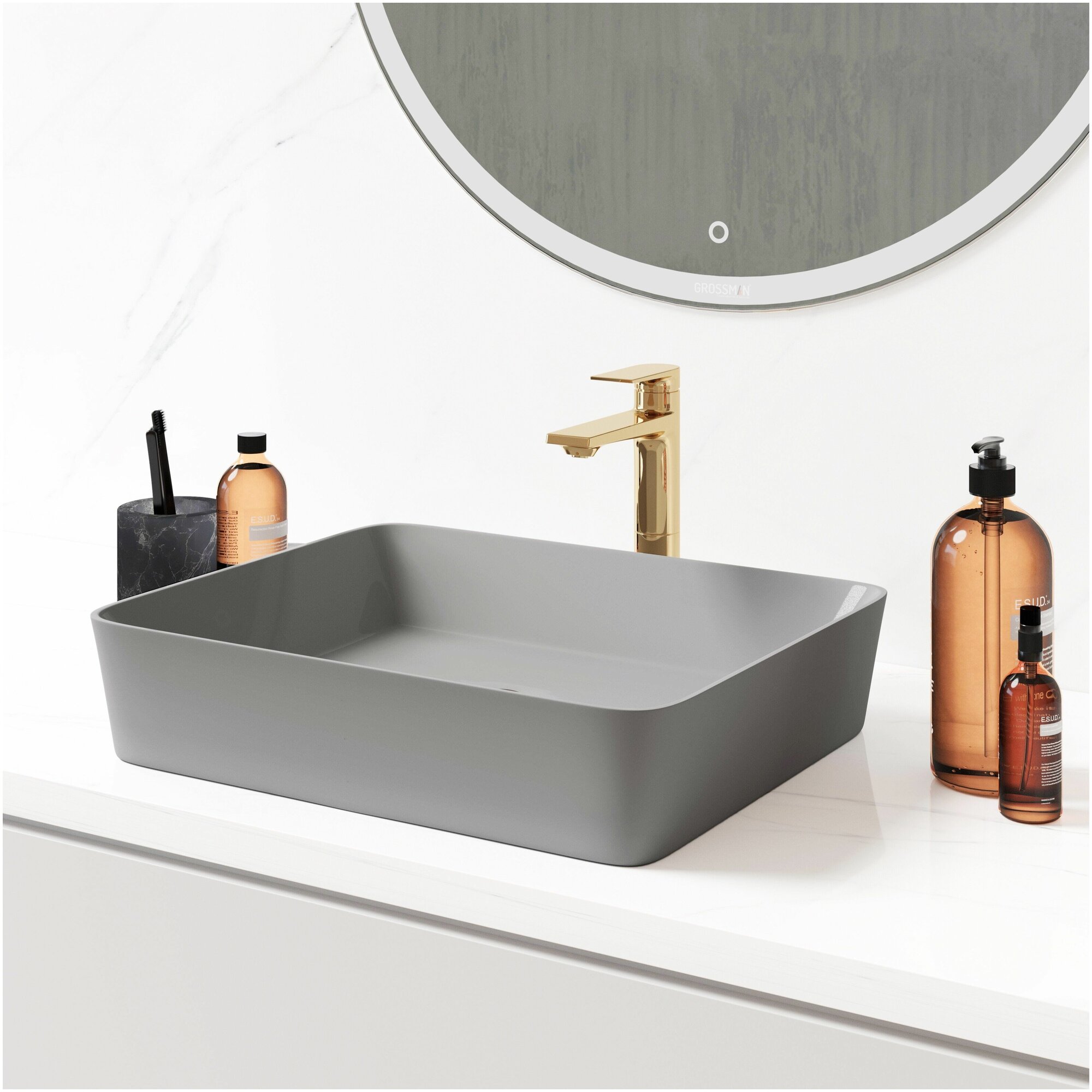 Раковина Grossman GR-3016GM (480*370*135) накладная, серая матовая, слив-перелив - установка невозможна, донный клапан - приобретается отдельно, диаметр слива - 4,5 см.