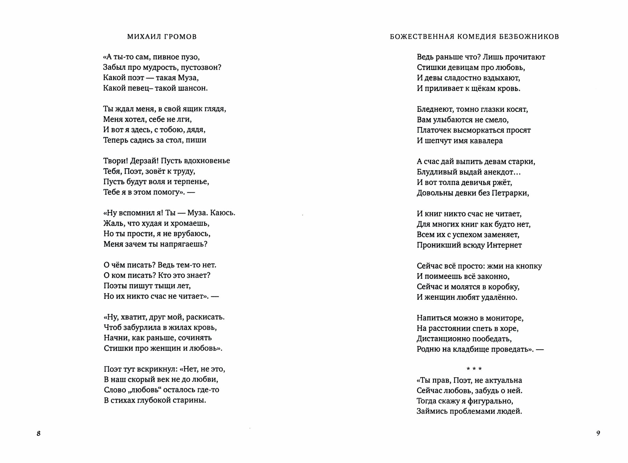 В книге представлены стихотворения Михаила Громова: "У подножия Парнаса. Поэт и Муза", "Российский Ад. Центральный офис", "Акт веры" и др.
