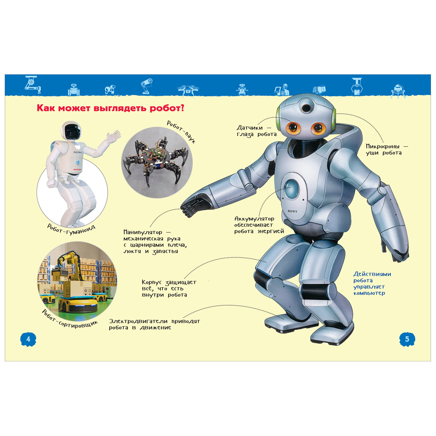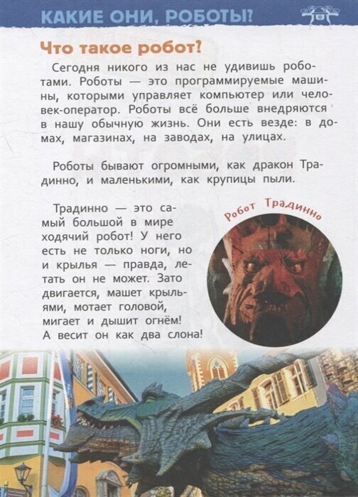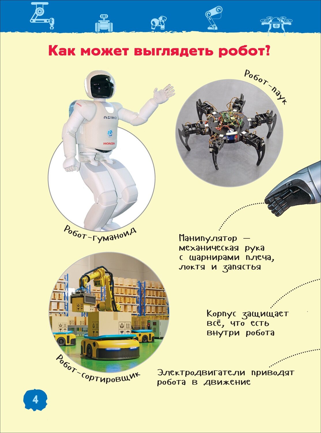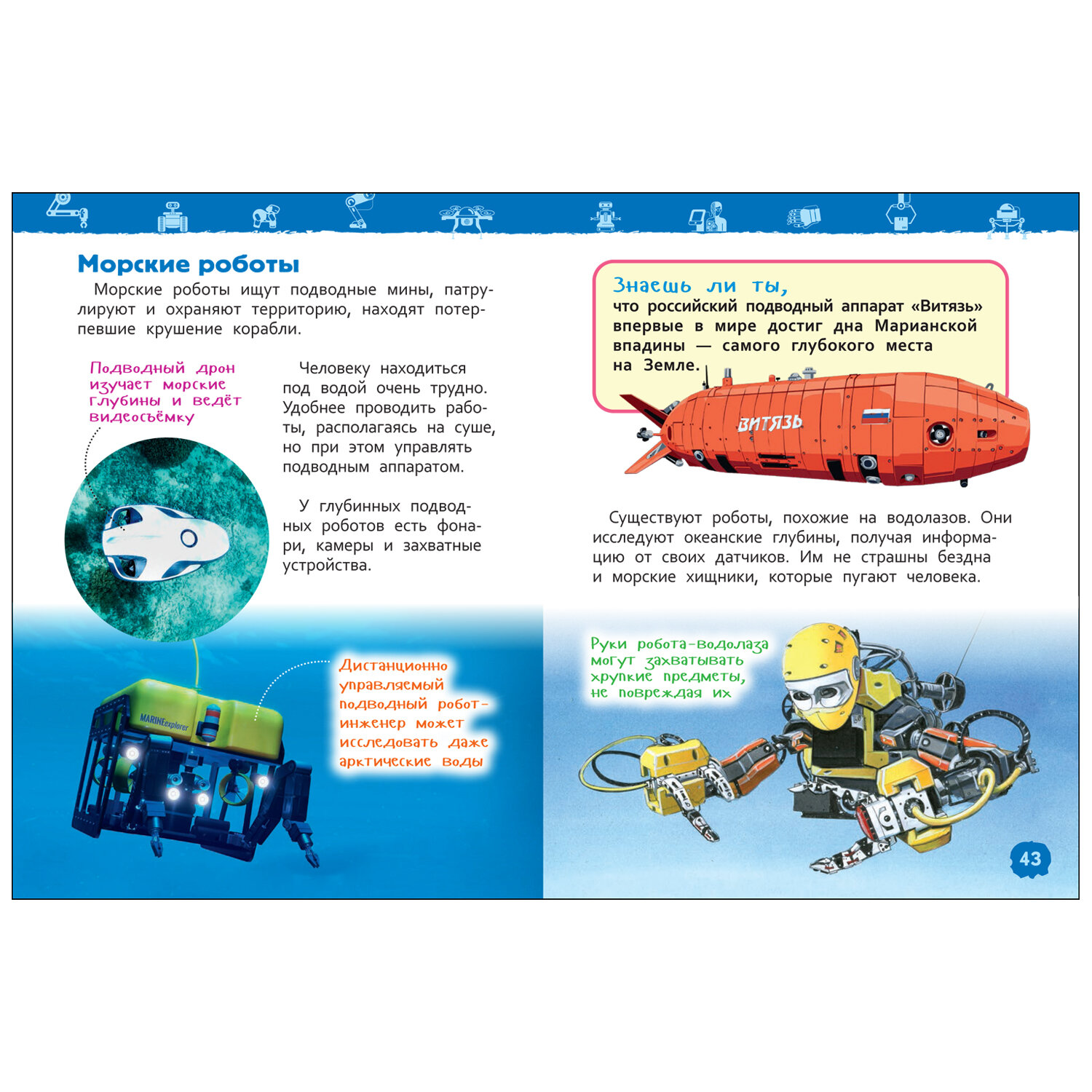 Новая книга серии «Энциклопедия для детского сада» введет ребенка в мир роботов. Он узнает, какими были первые роботы и насколько они изменились в XXI веке. Его ждет знакомство с роботами, которые занимаются уборкой, доставляют еду, готовят вкусные блюда, делают хирургические операции, ухаживают за больными, спасают людей, пострадавших в авариях, утилизируют космический мусор, изучают морские глубины, обезвреживают противника.