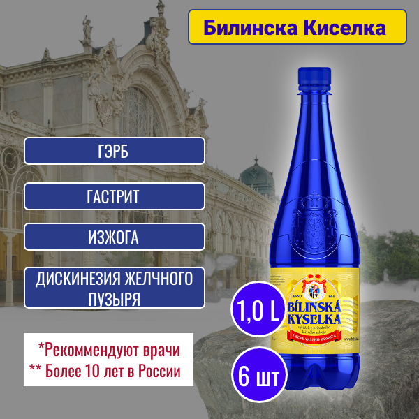 Сервис сравнения цен СкидкаГИД предлагает сравнить цены на товар «Вода Bilinska Kyselka минеральная лечебно-столовая газированная 1л»