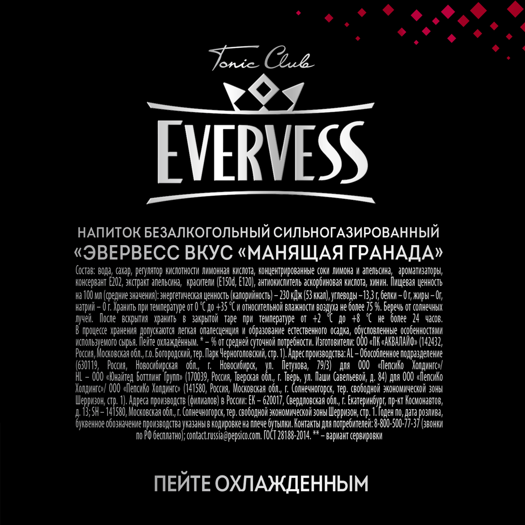 Тоник Evervess Гранат 1л Напиток Evervess Гранат газированный 1 л