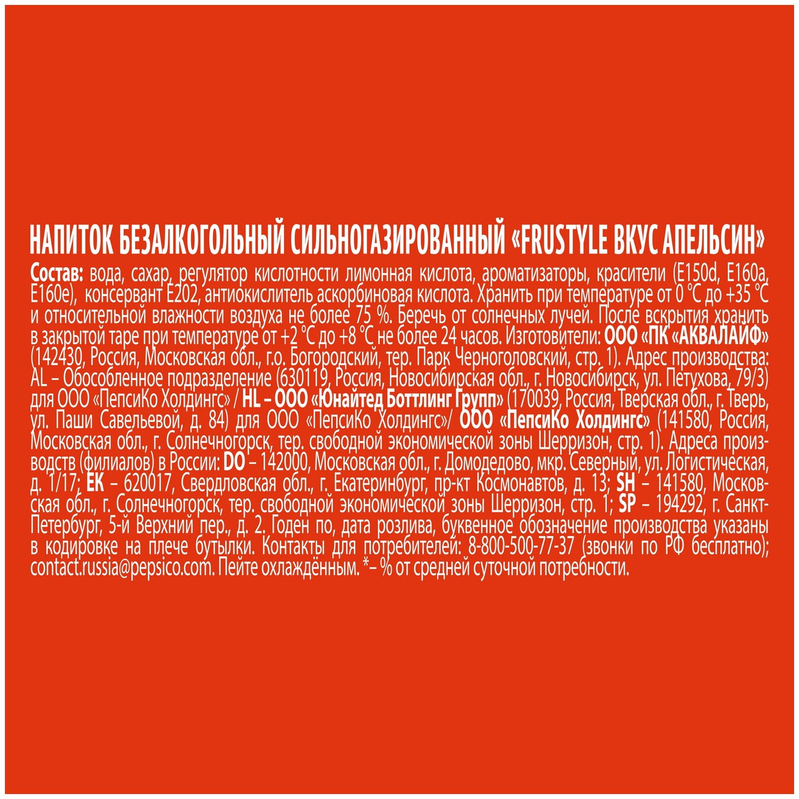 | Производитель | ООО "ПепсиКо Холдингс" |