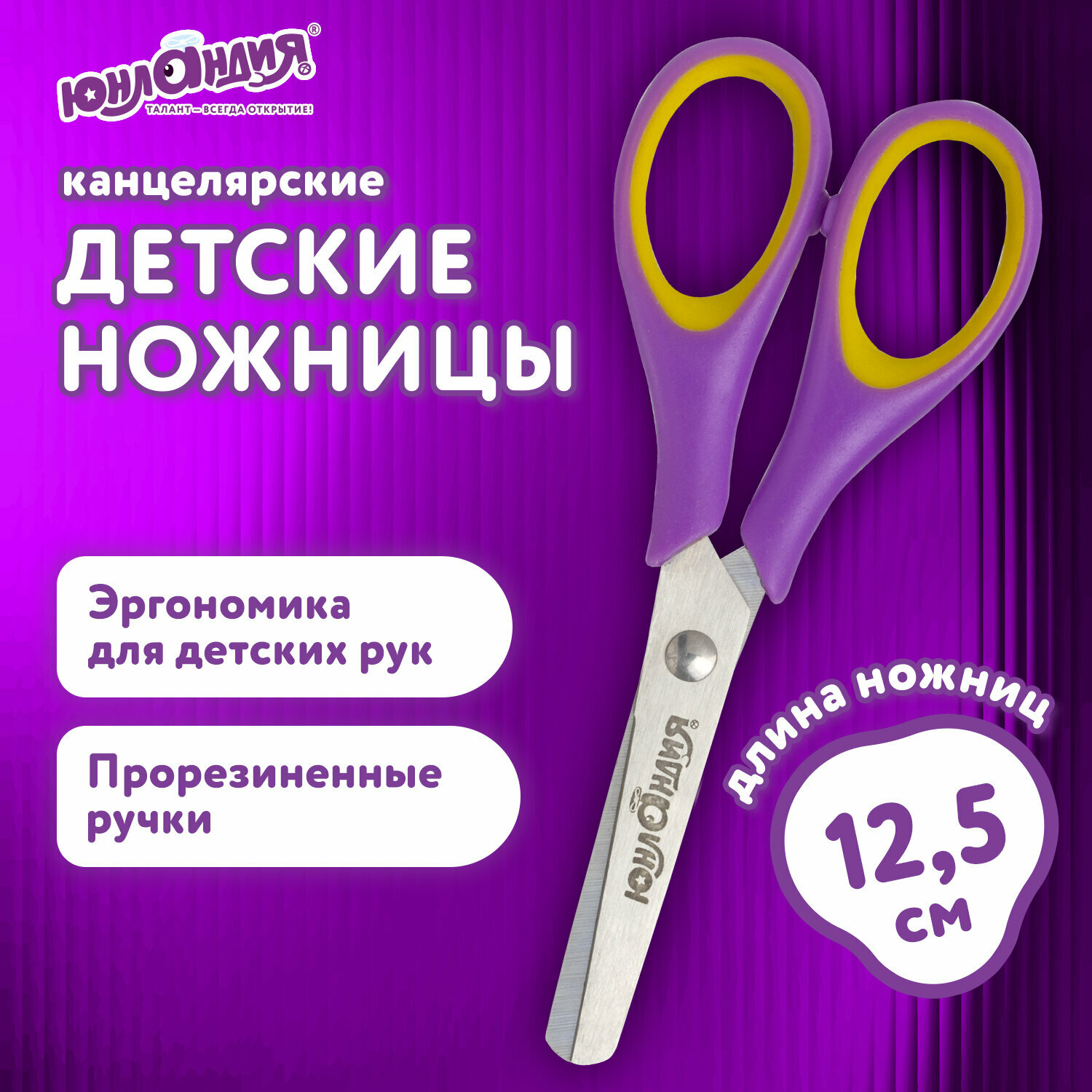 Ножницы Юнландия для правши Воздушный змей 125мм Ножницы Юнландия Воздушный змей с резиновыми вставками 12.5 см