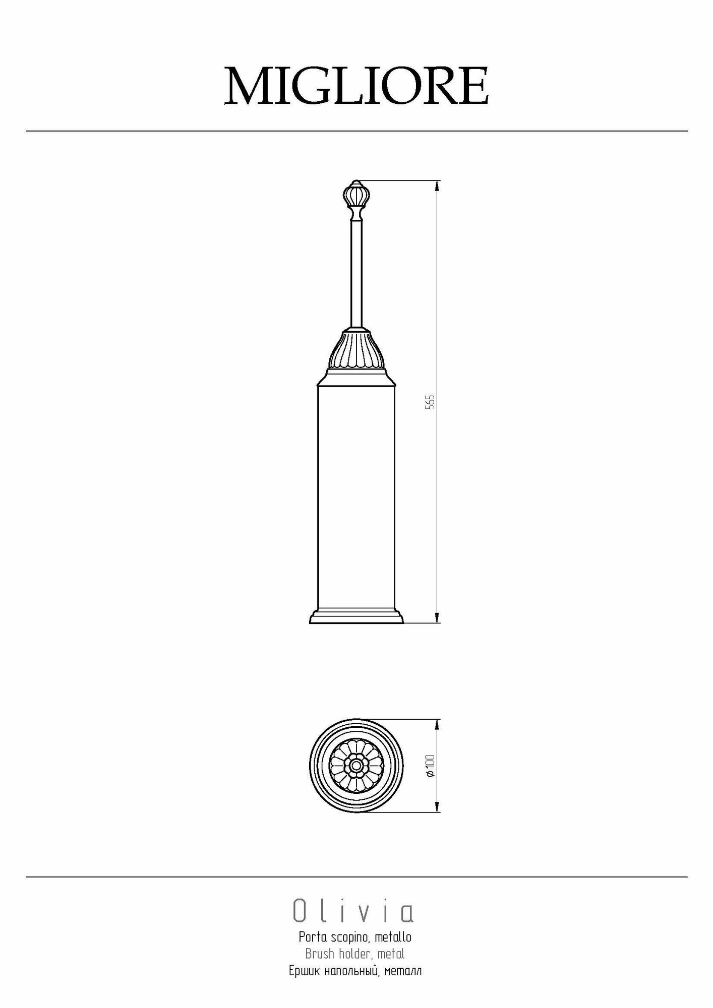 Напольный ершик коллекции OLIVIA бренда MIGLIORE - это функциональный аксессуар для ванной комнаты. Внутри латунной колбы вставлена пластиковая колба, которую легко вынуть, чтобы помыть.Изделие выполнено из латуни и имеет высококачественное хромо-никелиевое покрытие, которое при правильном уходе надолго сохранит свой блеск. Рекомендуется использовать чистящее средство бренда MIGLIORE для смесителей и аксессуаров с хромированным покрытием.Материал: Латунь+керамикаОснащение: крепления (шурупы)