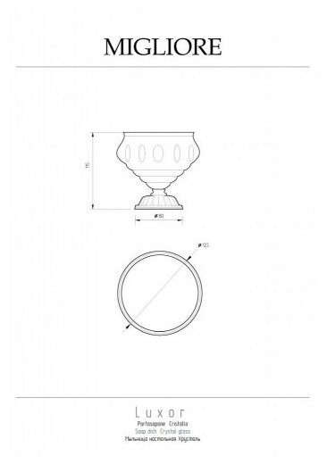 Настольная мыльница коллекции LUXOR бренда MIGLIORE выполнена из высококачественного хрусталя, декорированного золотом 24 кт. При необходимости хрустальную мыльницу можно вынуть из посадочного места, чтобы помыть. Изделие выполнено из высококачественной латуни и имеет гальваническое покрытие золотом 24 карата. Внимание: золотое покрытие очень деликатное и для ухода рекомендуется использовать чистящее средство бренда MIGLIORE для смесителей и аксессуаров с деликатными покрытиями бронза, золото, медь и протирать мягкой ветошью. Внимание: золотое покрытие очень деликатное и для ухода рекомендуется использовать чистящее средство бренда MIGLIORE для смесителей и аксессуаров с деликатными покрытиями бронза, золото, медь и протирать мягкой ветошью. Материал: Латунь+стекло Оснащение: крепления (шурупы)