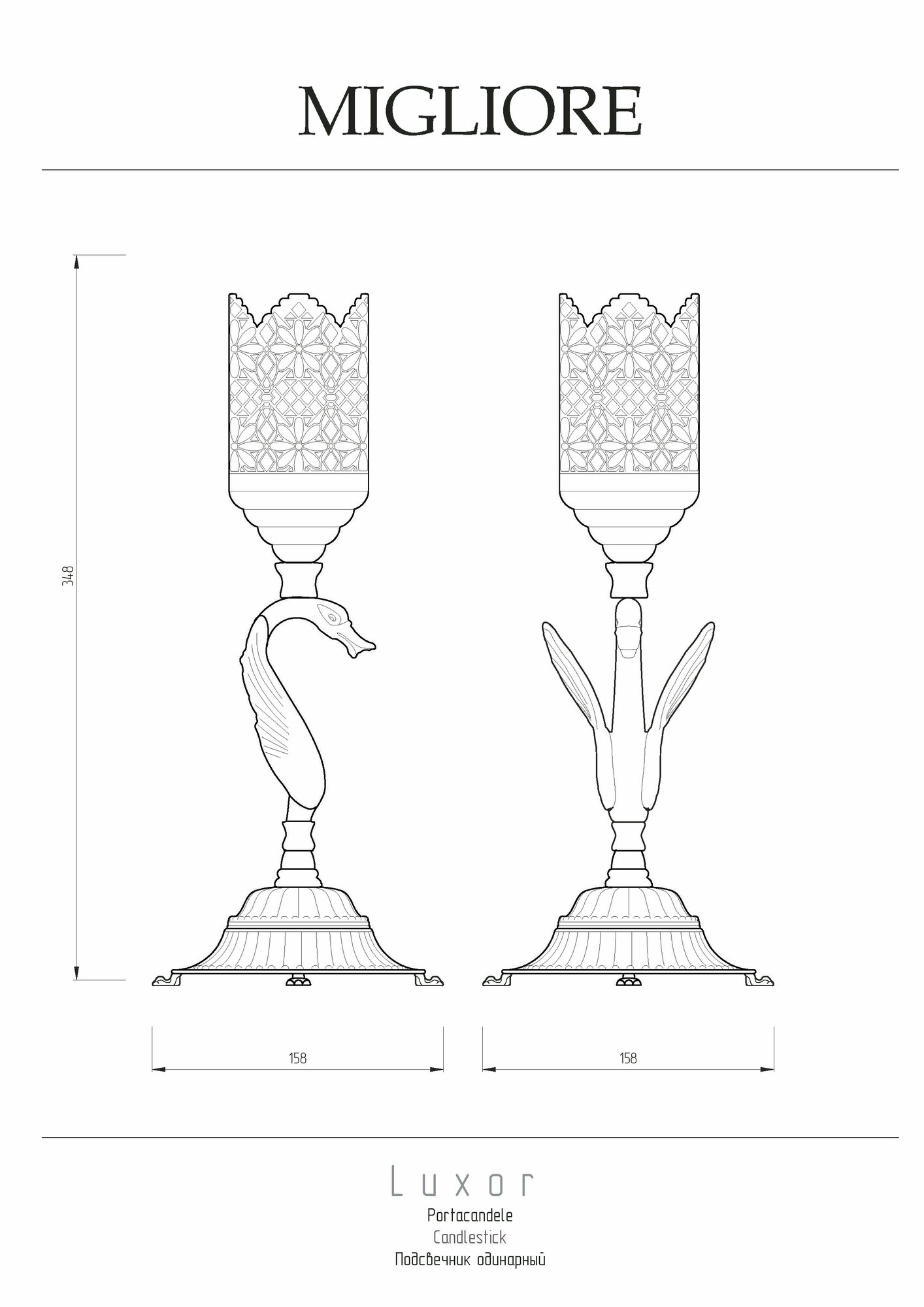 Подсвечник одинарный коллекции Luxor бренда Migliore имеет внешнее ажурное обрамление из латуни, внутри которого можно установить небольшую свечу. Свет свечи, проникая сквозь ажурную вязь, создает красивые узоры и неповторимую атмосферу. Изделие выполнено из высококачественной латуни и имеет гальваническое покрытие золотом 24 карата.