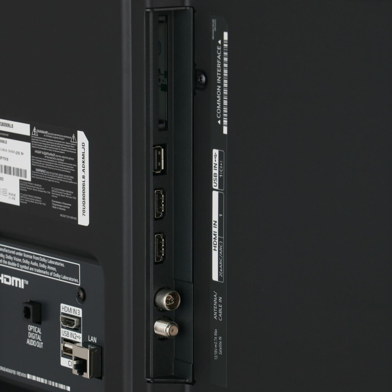 | Прочие особенности | Утонуть в океане ярких оттенков, увидеть четкие очертания каждого объекта в 4K-Ultra-HD-разрешении и ощутить преимущества интеллектуального управления предлагает своему обладателю телевизор LED LG 70UQ80006LB диагональю 178 см. При просмотре контента у вас появится впечатление, что звук следует прямо за картинкой, чему способствует технология LG Sound Sync. С 4-ядерным процессором производится автоматическая коррекция изображений, что улучшает цветопередачу и гарантирует максимальное погружение., Телевизор LED LG 70UQ80006LB позволит стать одним из болельщиков спортивной трансляции – для этого не нужно идти на стадион, а достаточно активировать одноименную опцию, исключающую вероятность задержек при быстро сменяющихся кадрах. Забудьте о долгих нажатиях на кнопки – технология речевого ввода сделает все за вас. При использовании Cloud Game вы перенесетесь на место событий игровой сессии, получая еще больше эмоций от развлечений. |