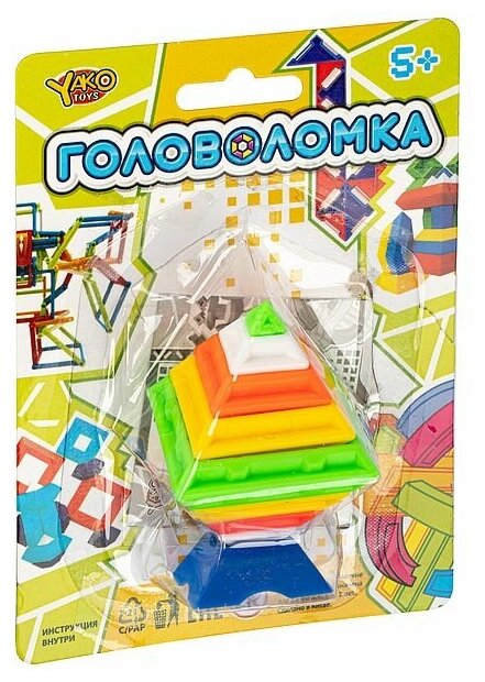 Головоломка - пирамидка. Отдельные детали не скрепляются между собой. Рассчитано на аккуратную сборку в виде пирамид различной формы. Под головоломкой находится чёрно-белая инструкция - раскладушка с изображением вариантов сборки. Развивает пространственное и логическое мышление, мелкую моторику рук.