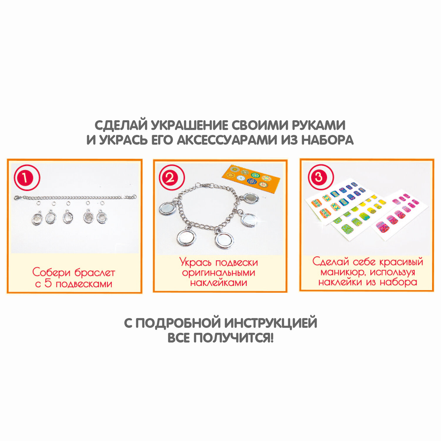 Подчеркните свой индивидуальный стиль с набором для создания украшений комплект этно серии Eva Moda от Bondibon. Перед Вами все необходимое для создания оригинального браслета с подвесками и три варианта наклеек для яркого маникюра! Достаньте и рассмотрите содержимое набора. Украсьте подвески стикерами и прикрепите их к основе для браслета. Оригинальное украшение готово! Сделайте модный маникюр при помощи наклеек из набора. Стильный образ в этно стиле готов! Увлекательное занятие поможет ребенку развить творческие способности, цветовосприятие и эстетический вкус, проявить талант дизайнера, выработать терпение и аккуратность. Комплект этно от Бондибон – интересный и полезный подарок для девочки. В набор входят: основа для браслета, подвески, фурнитура, наклейки для подвесок, 3 листа с наклейками на ногти, инструкция. Возраст 6+ Соберите коллекцию наборов для творчества серии Ева Мода!