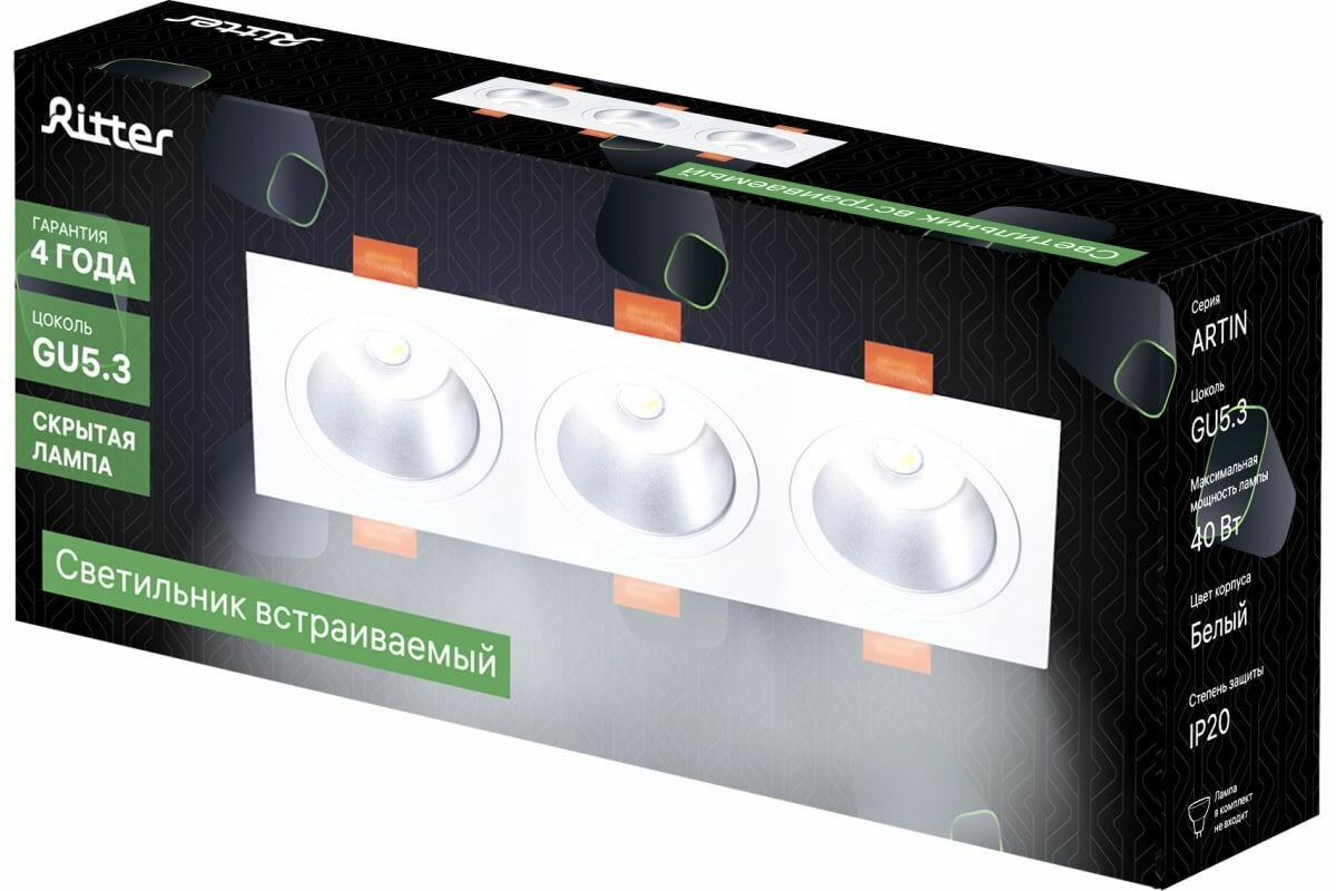 светильник встраиваемый RITTER Artin 3хGU5.3 алюминий белый 51421 3