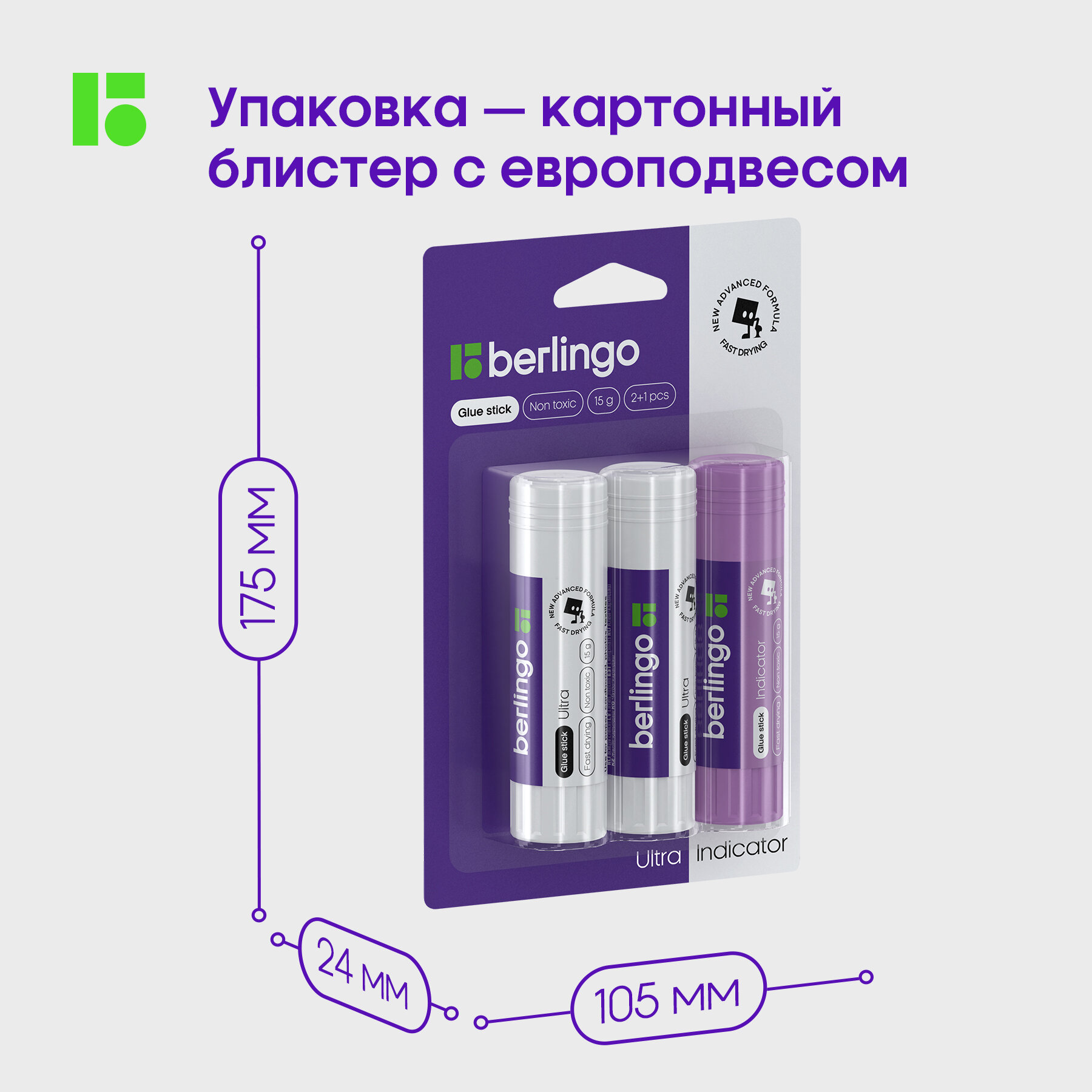 Клей-карандаш Ultra. Indicator 3 штуки Berlingo