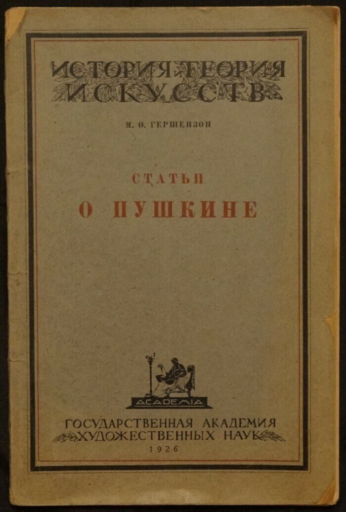 Михаил Осипович Гершензон (1869-1925) - историк русской литературы и общественной мысли XIX века, философ, публицист, переводчик, неутомимый собиратель эпистолярного наследия многих деятелей русской культуры, редактор и издатель и, прежде всего, тонкий и яркий писатель. Несколько особняком стоит для Гершензона творческая личность Пушкина, творчество которого понимается как средоточие важнейших проблем соотношения индивидуального и всеобщего. Разработанный Гершензоном принцип "медленного чтения", при очевидных недостатках (главным из которых являлось "вчитывание" в произведение постороннего ему смысла), позволял увидеть в Пушкине поэта, дававшего глубокие ответы на важнейшие вопросы бытия.
