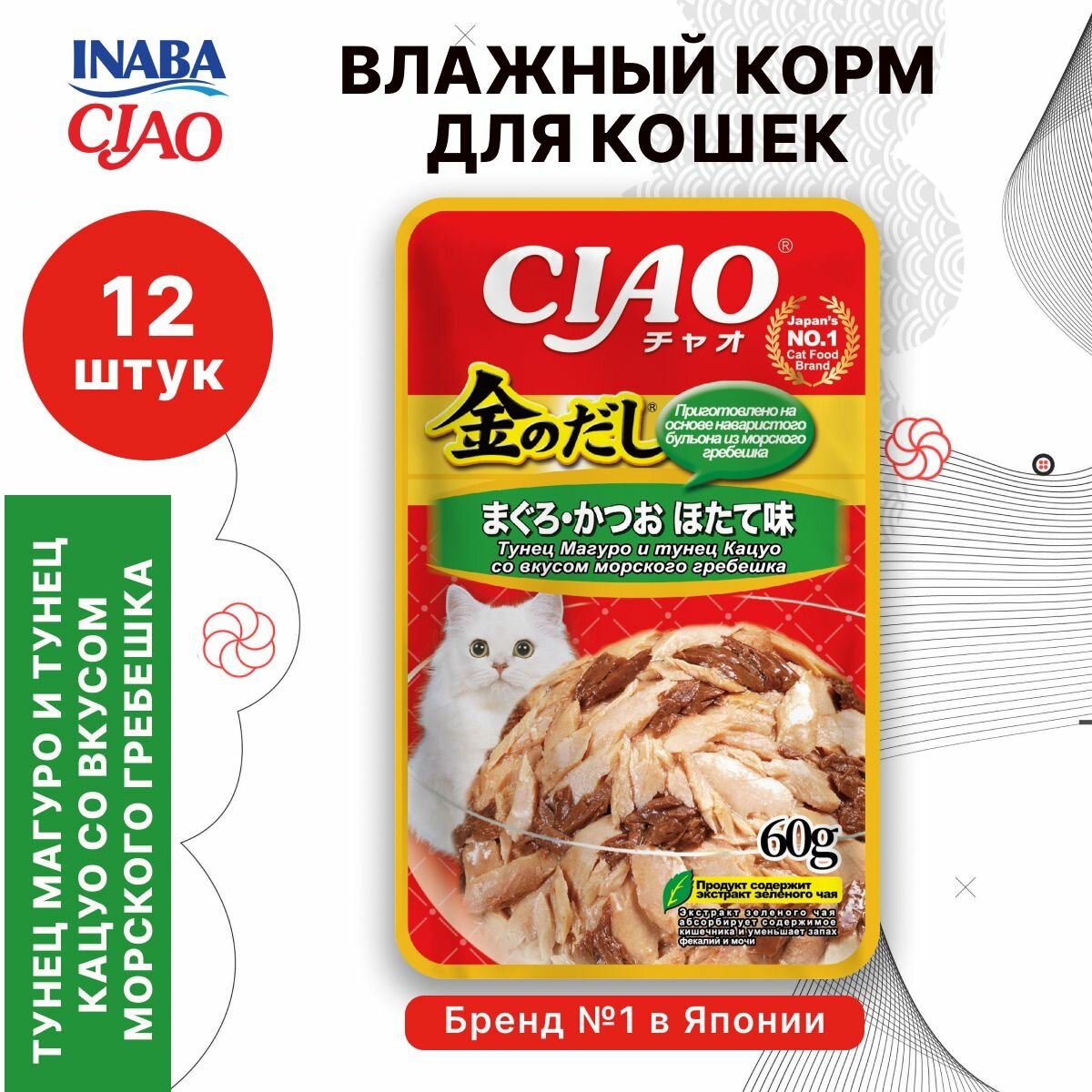 На сегодняшний день товар «Влажный корм для кошек Ciao Kin no dashi Тунец Магуро и тунец Кацуо с куриным филе 60г» можно купить с кешбеком в 1 магазине: Яндекс.Маркет