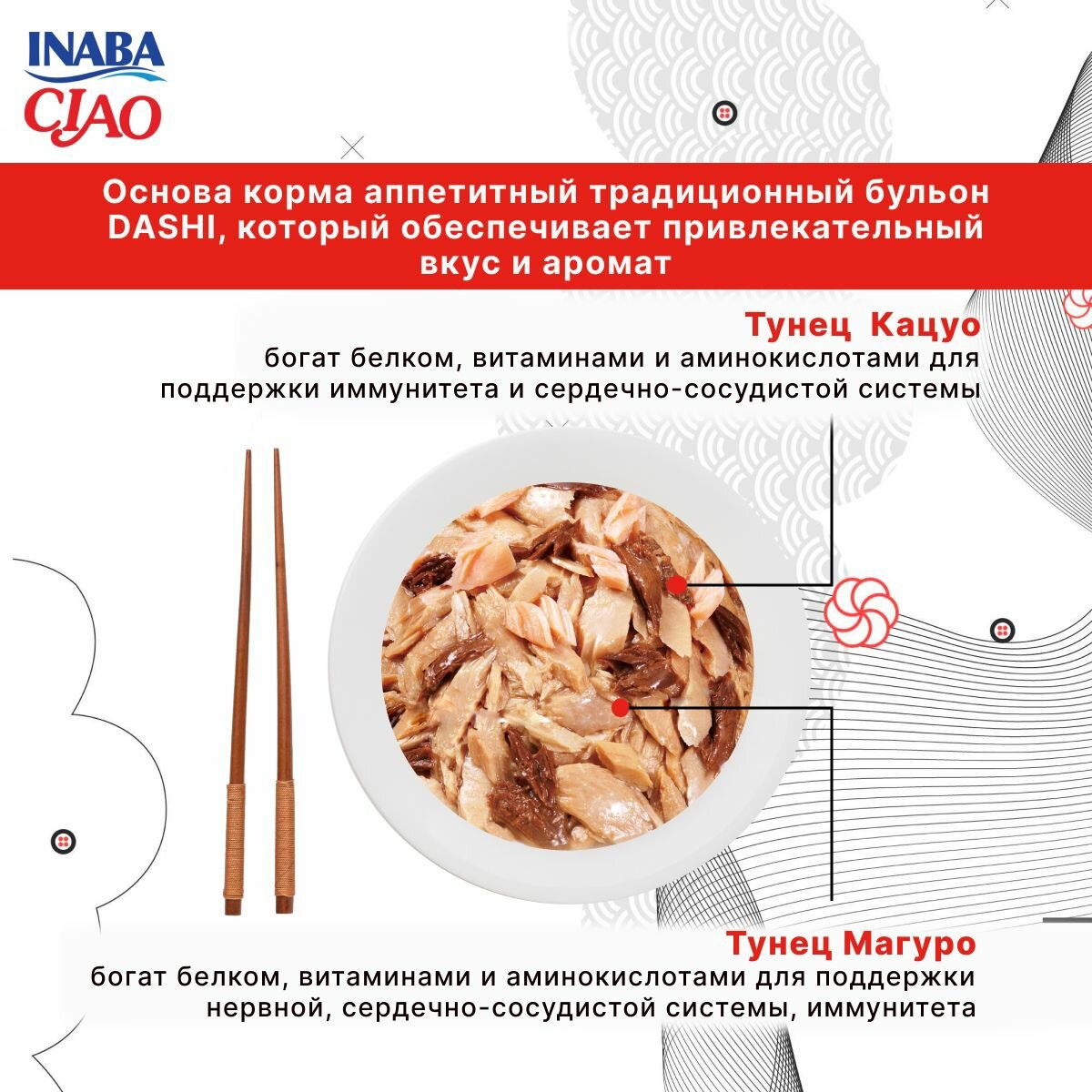 Микс из тихоокеанского тунца с филе курицы и японского тунца-бонито. Серия паучи «Со смаком».