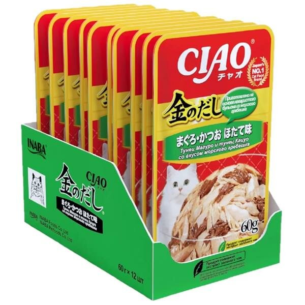 Влажный корм для кошек Ciao Kin no dashi Тунец Магуро и тунец Кацуо с куриным филе 60г