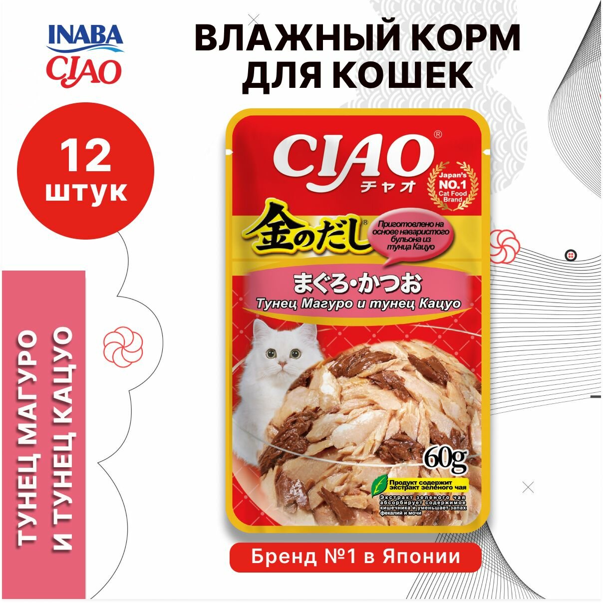 Влажный корм для кошек Ciao Kin no dashi Тунец Магуро и тунец Кацуо 60г